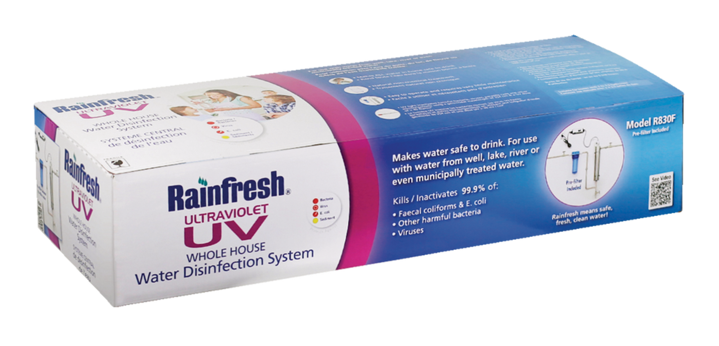 If you rely on water from a private well or lake and are concerned about its microbiological safety, the Rainfresh UV Water Disinfection System offers peace of mind. Using the natural power of ultraviolet light—a non-chemical, environmentally friendly solution—this system effectively neutralizes bacteria, coliform (such as E. coli), viruses, parasitic cysts, and other harmful microorganisms. Operating at a germicidal wavelength of 254 nm and a UV dose of 40 mJ/cm², the Rainfresh UV system ensures that your water is safe to drink from virtually any potable source, giving you safe, clean water without the use of chemicals.