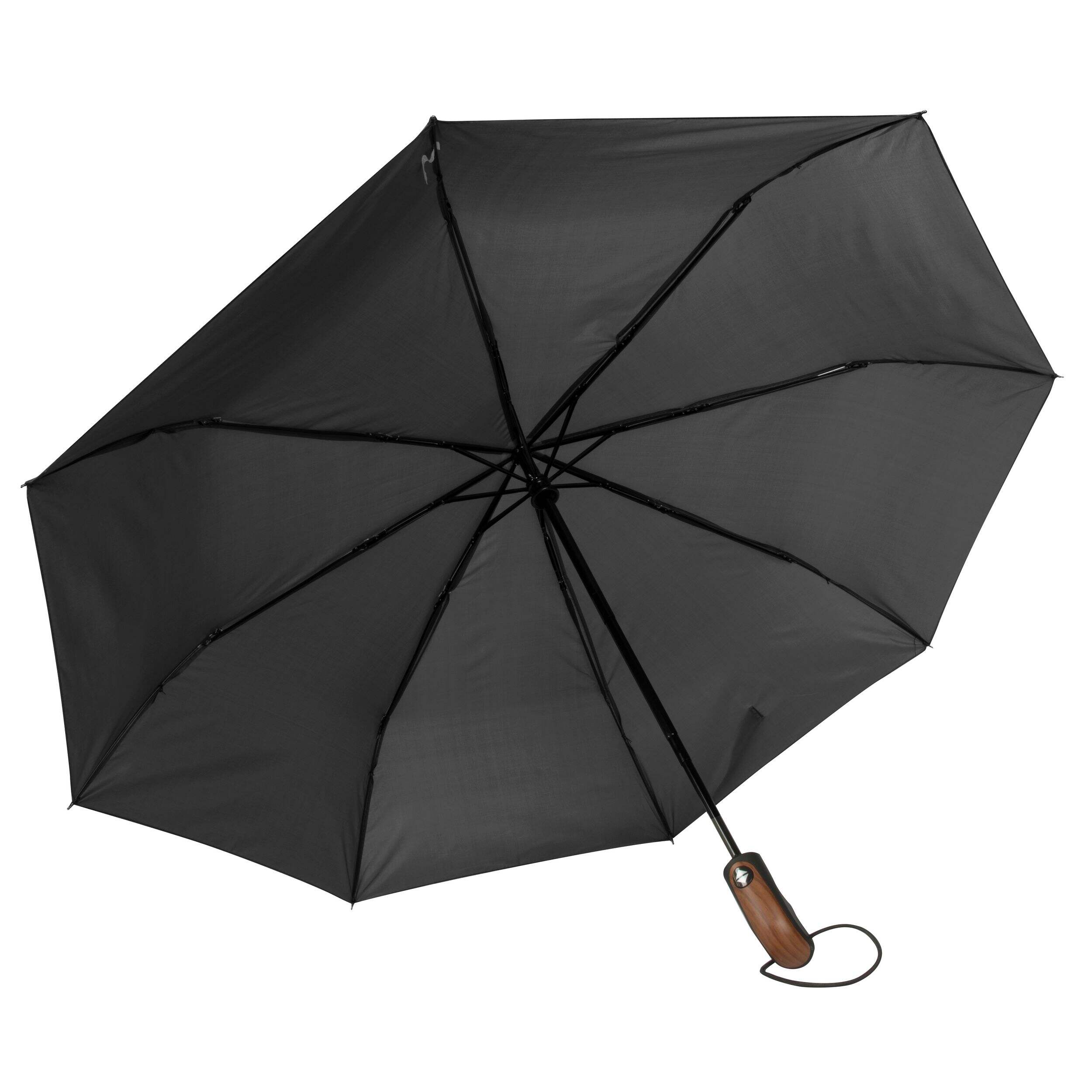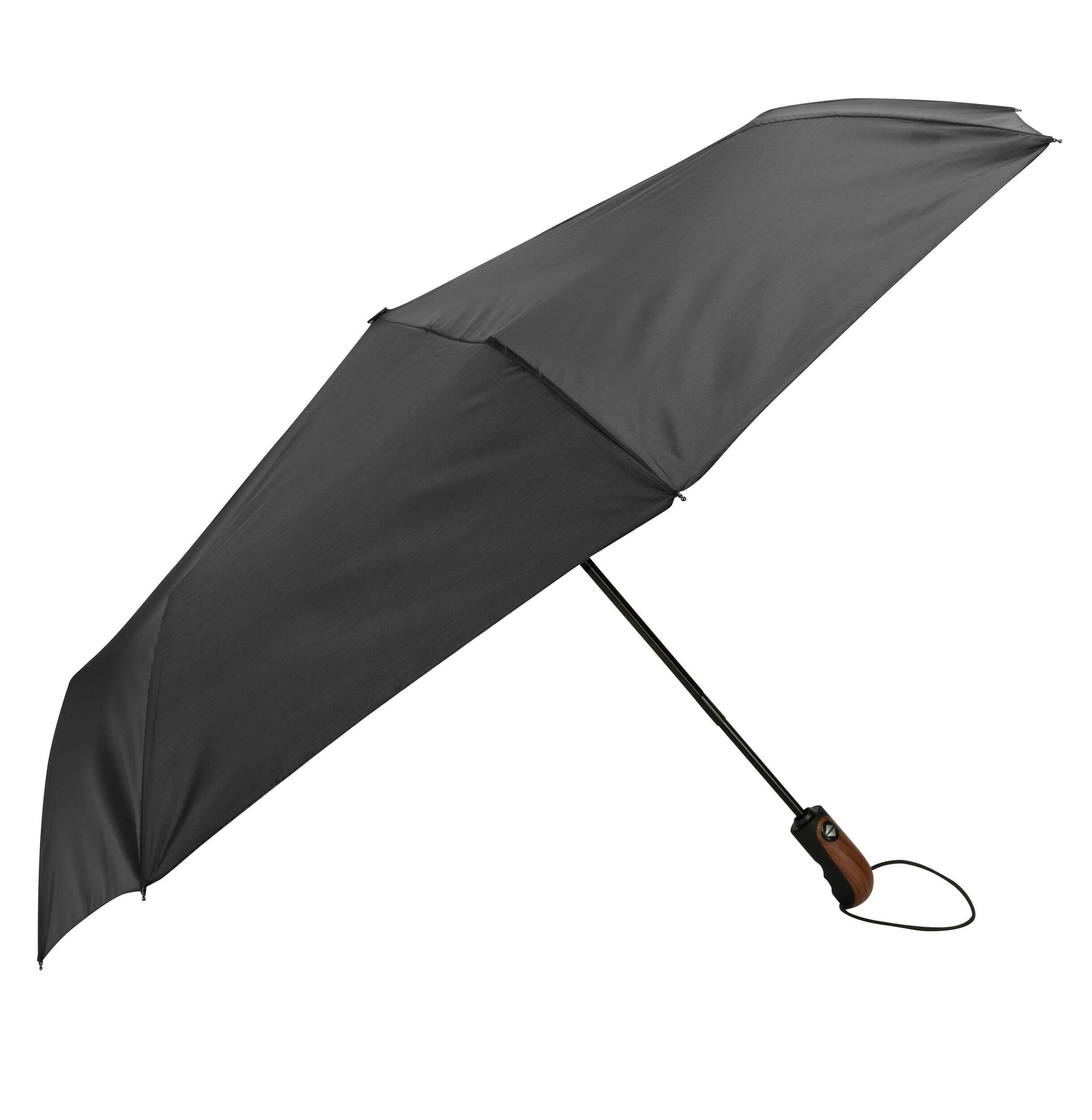 RainTech makes rainy days a breeze with its Deluxe Auto Open/Close Umbrella. Designed for ease and functionality, this umbrella offers full coverage from light drizzle to heavy downpours. The rubberized handle has a faux wood finish that feels nice in your hand and also helps you maintain a firm grip, even when wet. The umbrella comes with a self-case and attached carabiner, allowing you to keep it securely stored when not in use.