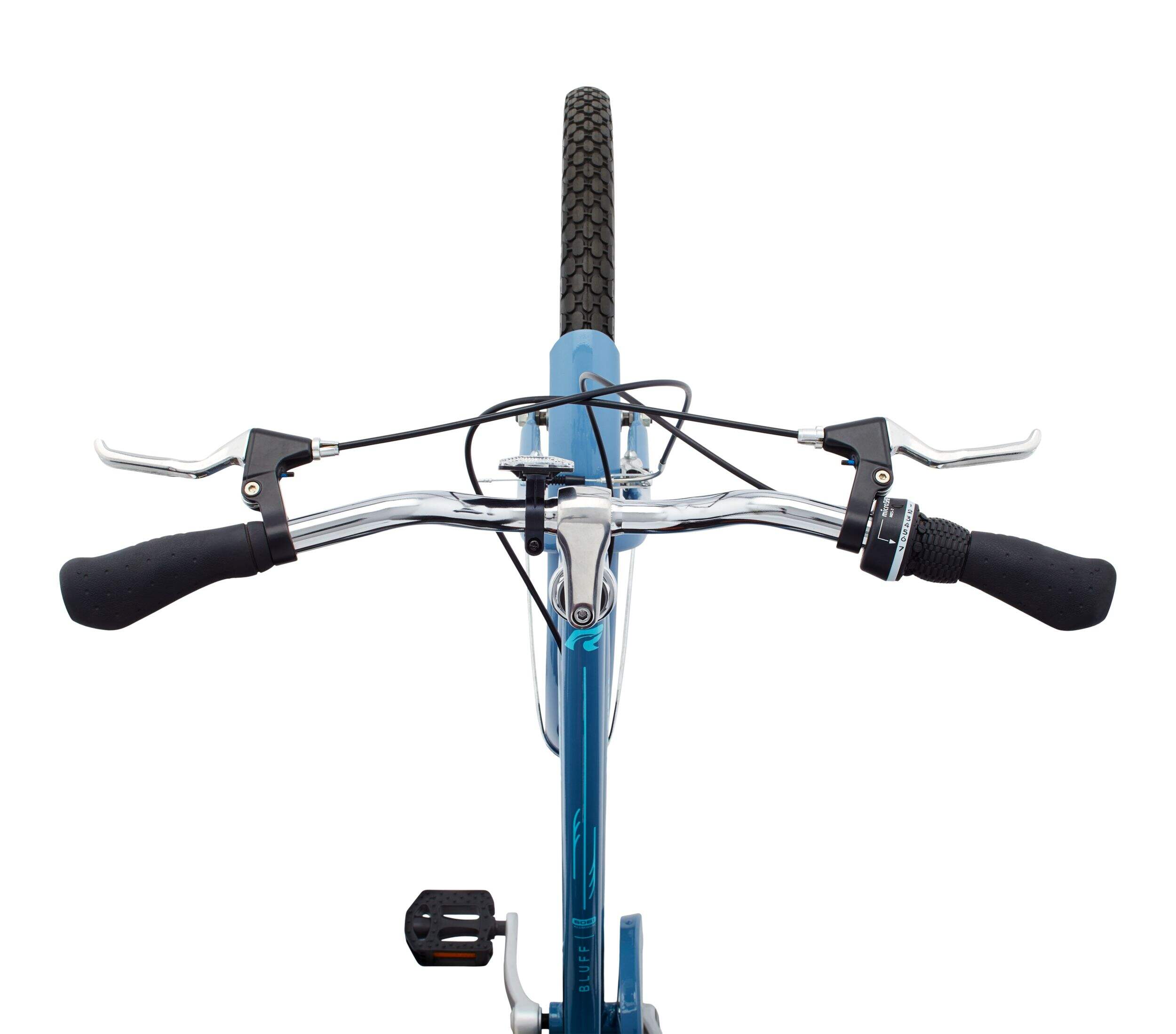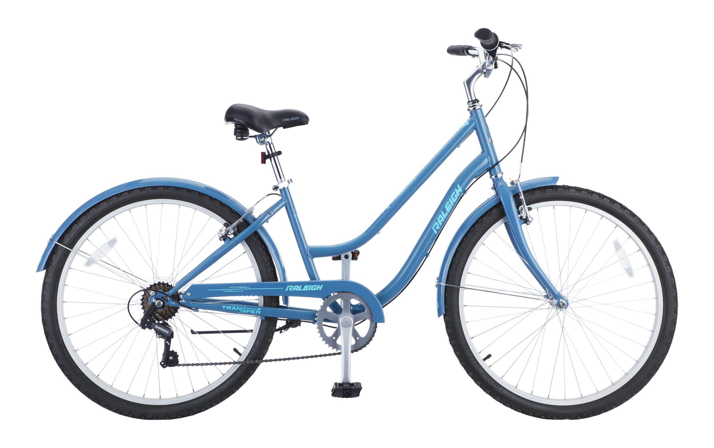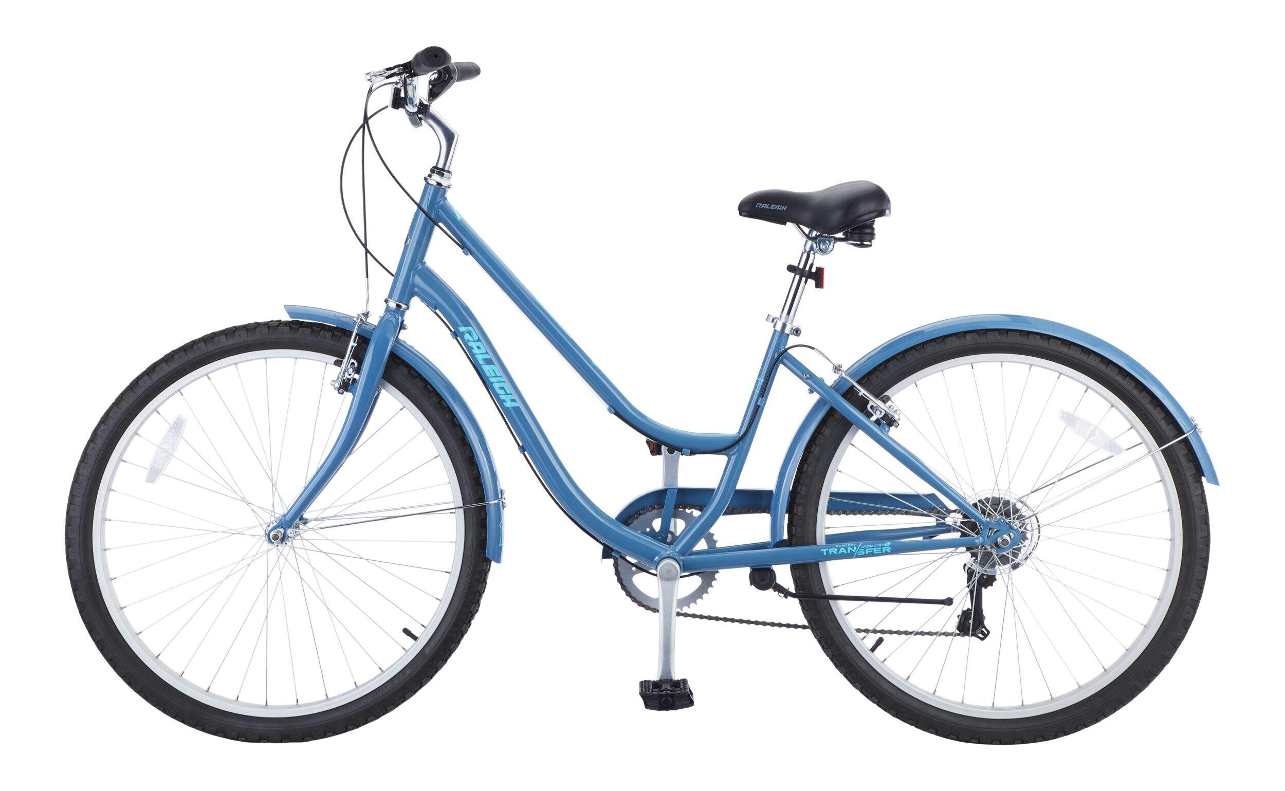 Take it easy and enjoy the ride on Raleigh's Bluff Comfort bike. With its step-through steel frame and 26" wheels, mounting and dismounting is an absolute breeze. The 7-speed Shimano drivetrain helps you tackle hills without breaking a sweat, while fenders and a chainguard keep you clean when the pavement's wet. It arrives assembled, so you can just wear your helmet and start cruising.