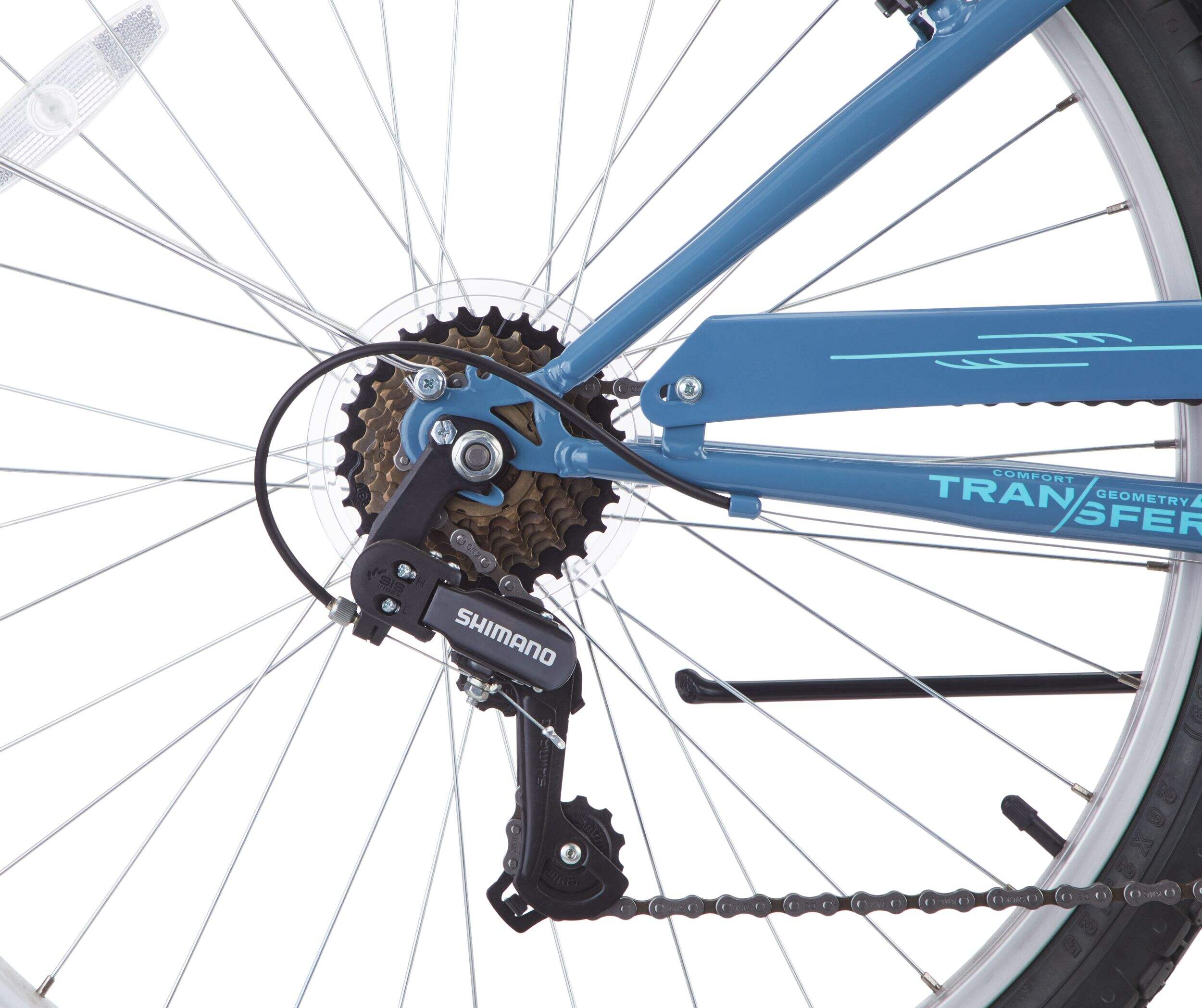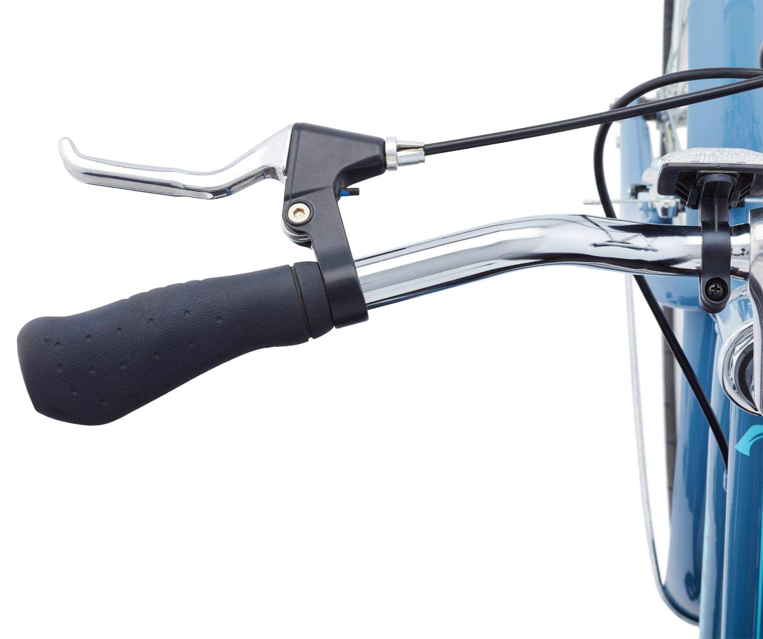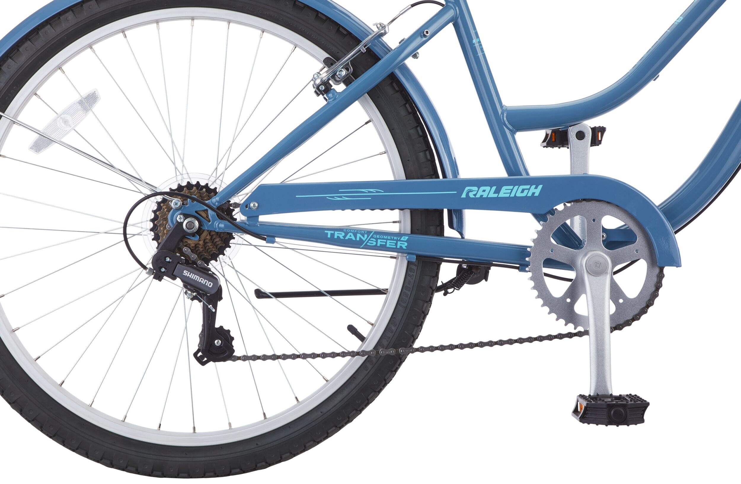 Take it easy and enjoy the ride on Raleigh's Bluff Comfort bike. With its step-through steel frame and 26" wheels, mounting and dismounting is an absolute breeze. The 7-speed Shimano drivetrain helps you tackle hills without breaking a sweat, while fenders and a chainguard keep you clean when the pavement's wet. It arrives assembled, so you can just wear your helmet and start cruising.