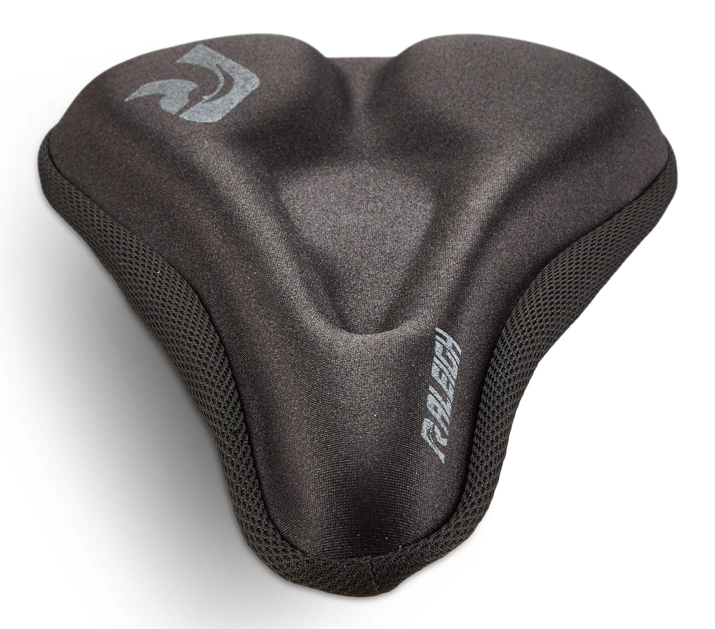 Enjoy the ultimate in bike seat comfort when you ride with the Raleigh Comfort Memory Foam Bike Seat/Saddle Cover. This black memory foam seat cover slips easily over most bike saddles to provide an extra comfortable ride. The thick memory foam is ideal for cushioning pressure points while you ride, and stays in place without shifting to provide superior support and comfort, even on your longest rides.