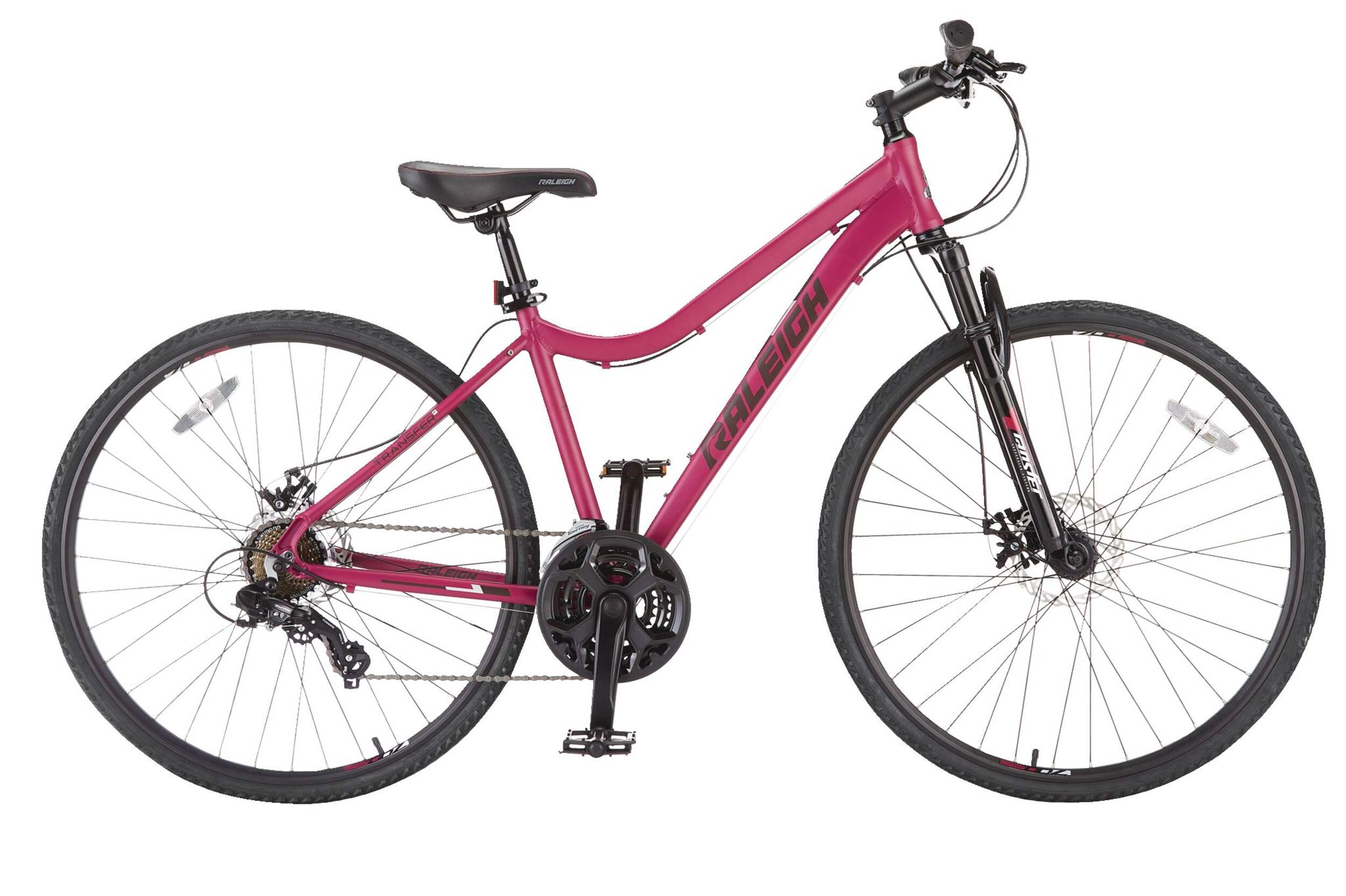 The Raleigh Encounter Hybrid Bike is perfect for riders who want a bike that performs on both trails and city streets. Designed as a Dual Sport bike, it combines the durability of a mountain bike with the efficiency of a hybrid, making it ideal for those who crave adventure and city cruising alike. Hit the trails in the morning and navigate the urban landscape in the afternoon with ease. With a stylish pink finish, the Encounter is ready for any terrain, any time.