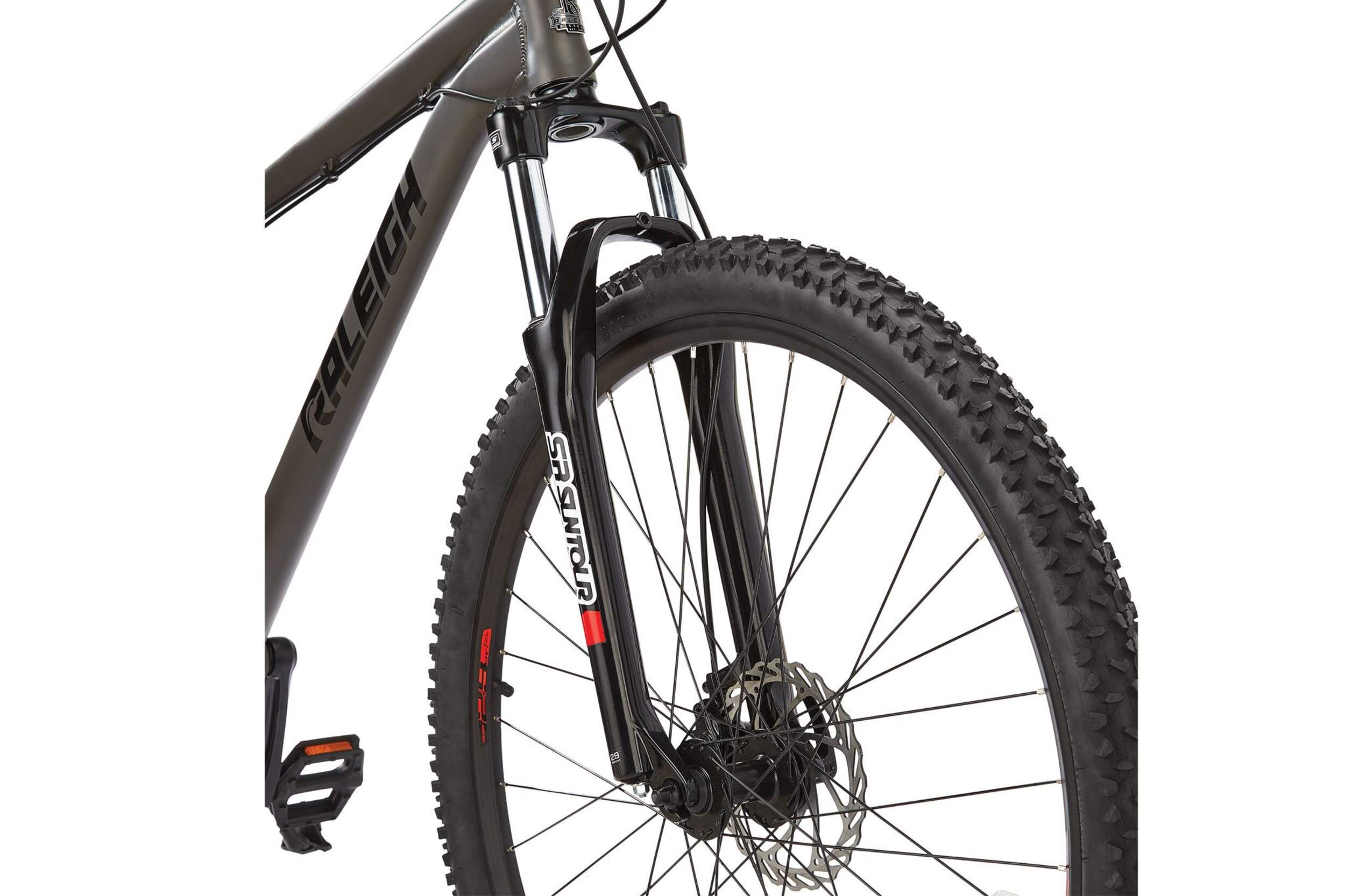 The Raleigh Ridge HS Hardtail Mountain Bike, 29-in, is built for riders who want stability and performance on a variety of terrains. Featuring a 21-speed Shimano gear system and front suspension fork, this bike offers smooth gear changes and absorbs bumps for a comfortable ride on rugged trails and urban paths. Ideal for beginner to intermediate cyclists, the Raleigh Ridge HS blends reliability with a sleek grey finish, making it perfect for both trail and city adventures.