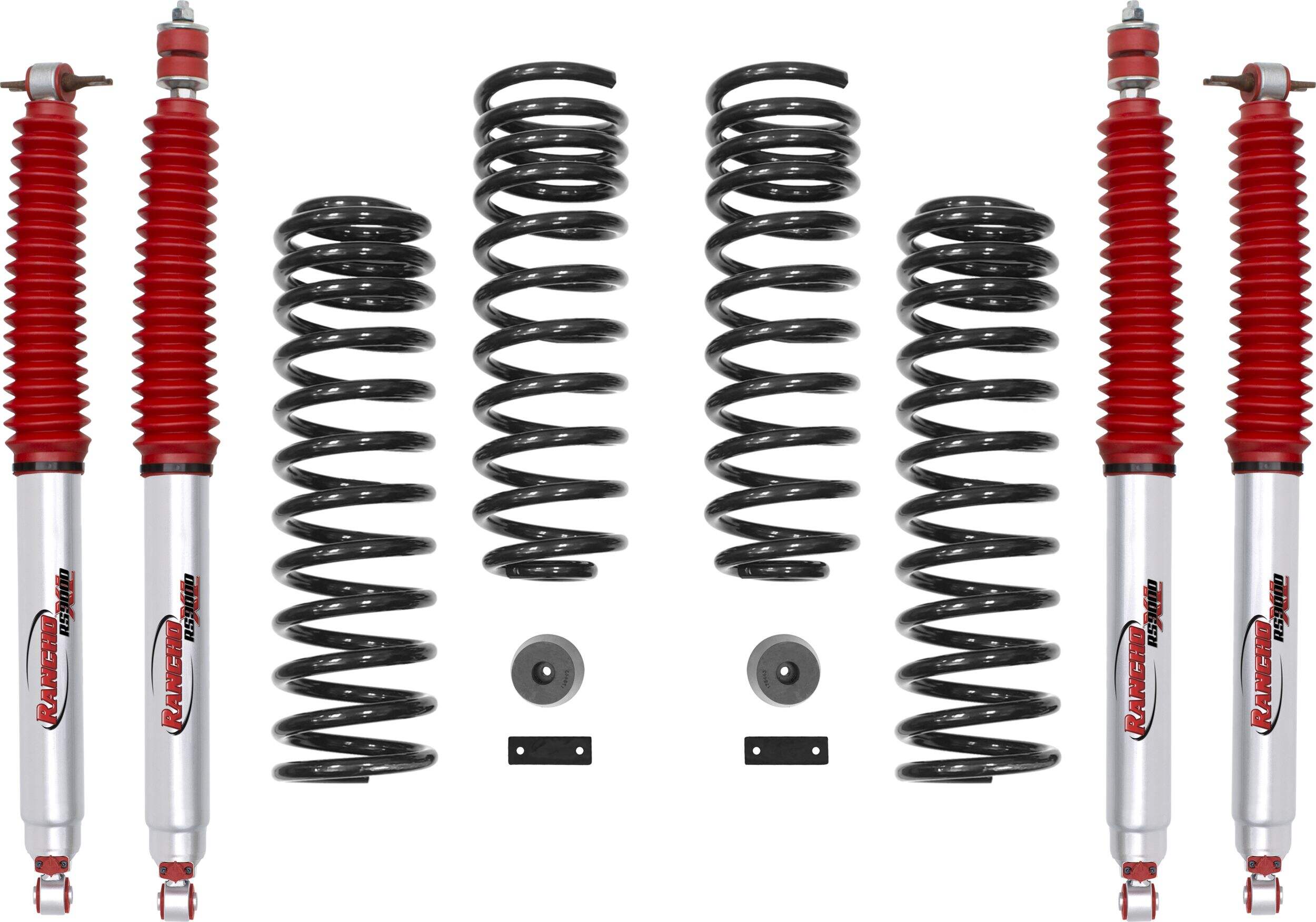 Kit includes Rancho Progressive Rate front and rear coil springs