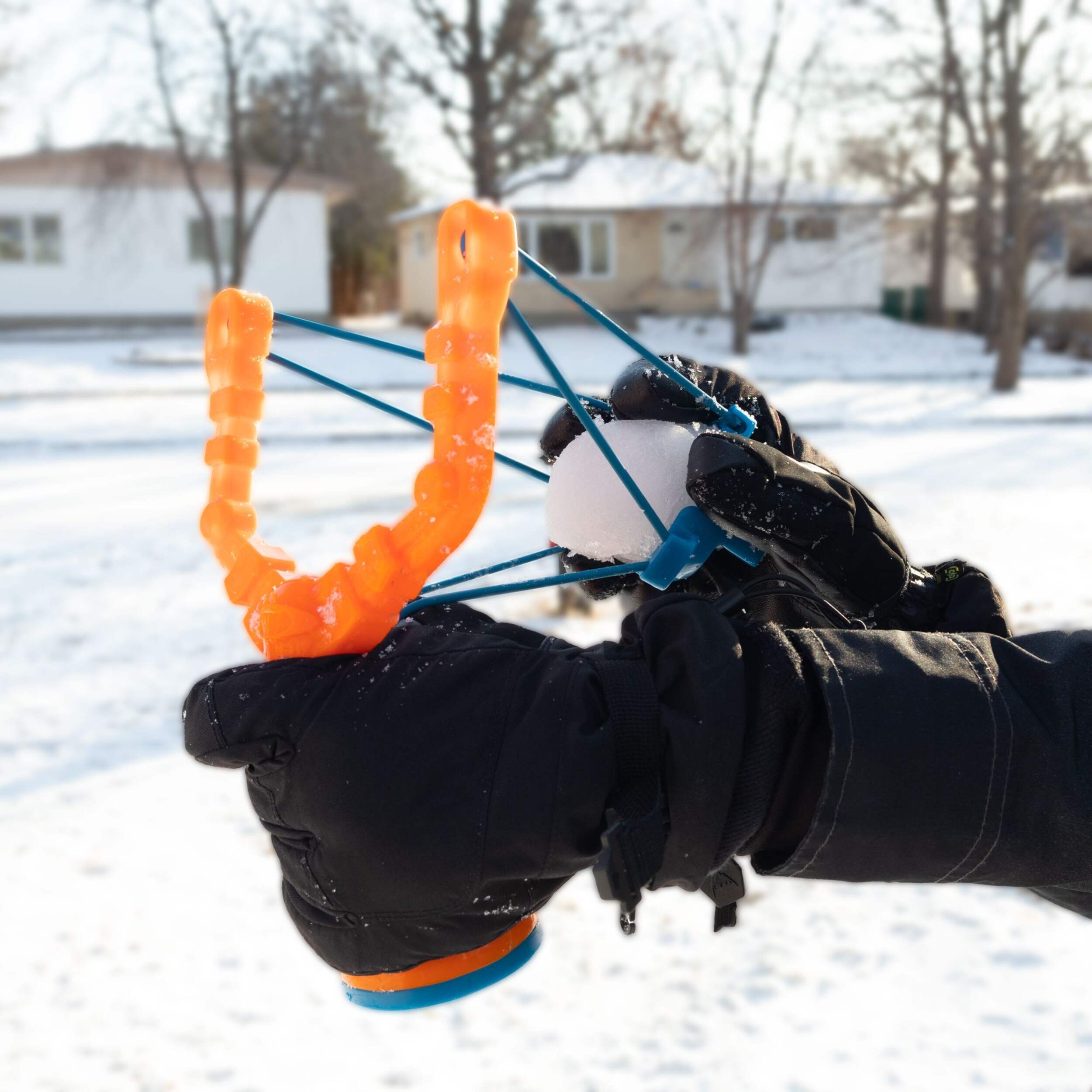 The Rapid Strike Kids' Snowball Slingshot Shooter, Winter Outdoor Snow Toy, lets you launch snowballs with an easy to use slingshot