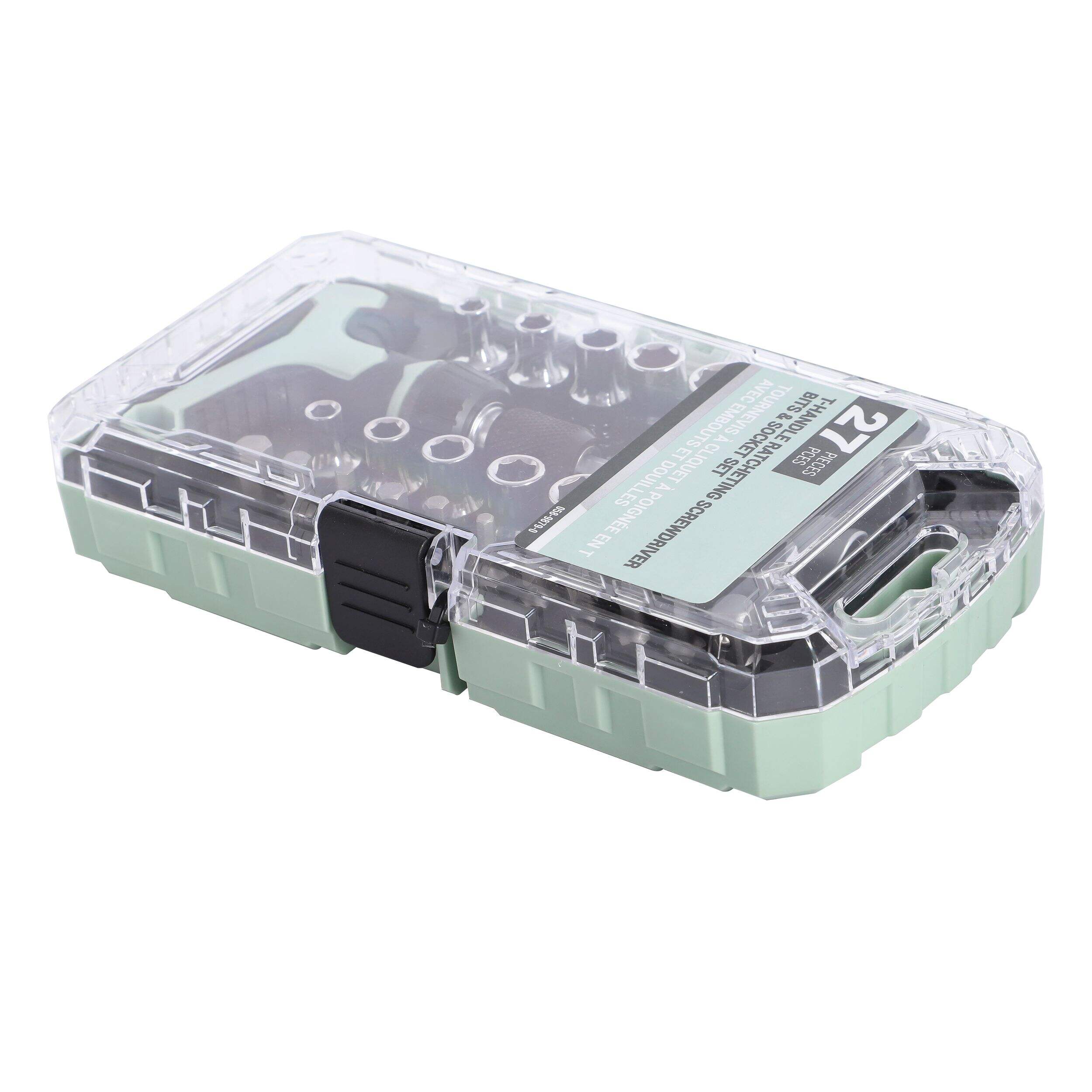 This Ratcheting T-Handle General Tool Set has everything you need to get started on your next project. The 27-piece tool set includes a full socket set in varying sizes, allowing you to tackle all sorts of home projects. This ratchet set also comes with a matching long-handle ratchet with a non-slip handle and a free-spin base, giving you extra torque in tight spaces.