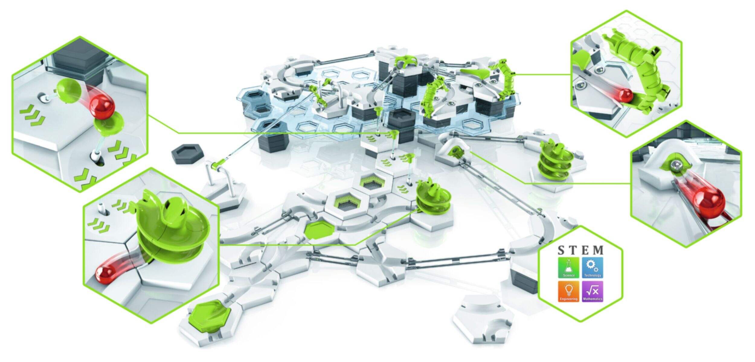 An interactive marble run racing game that teaches kids about gravity and other forces of resistance and attraction
