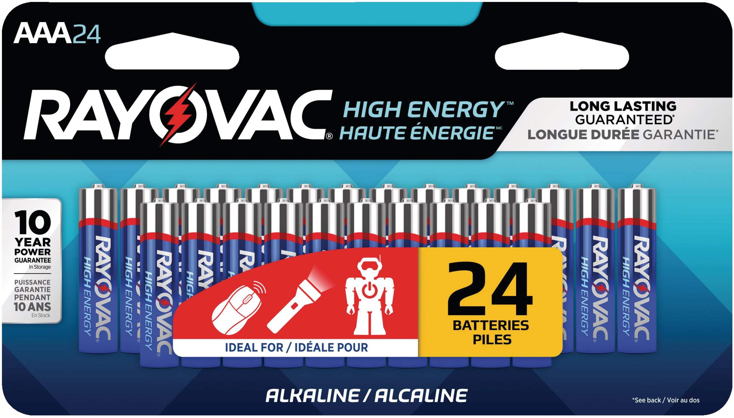 Includes 24 AAA alkaline batteries per pack