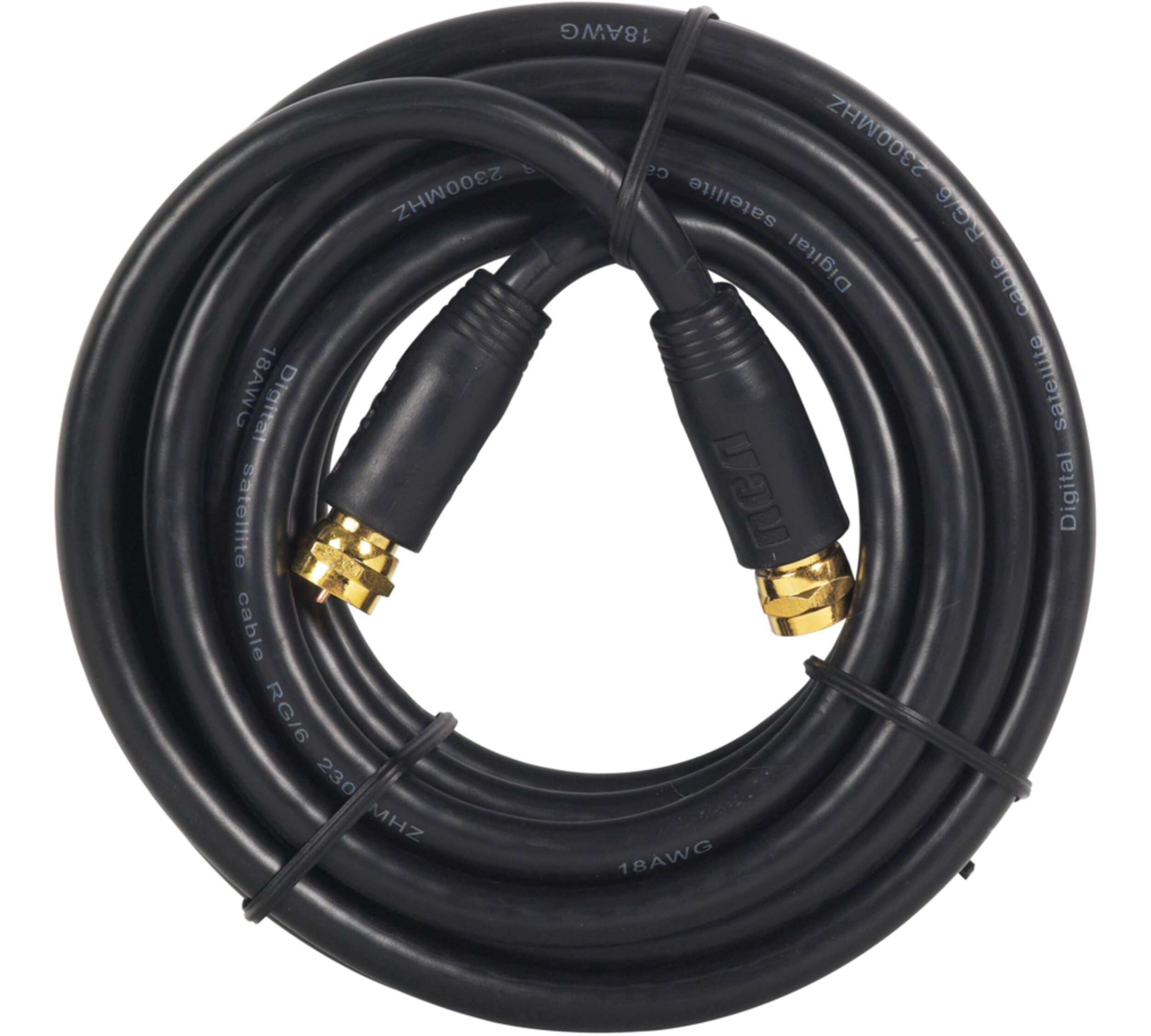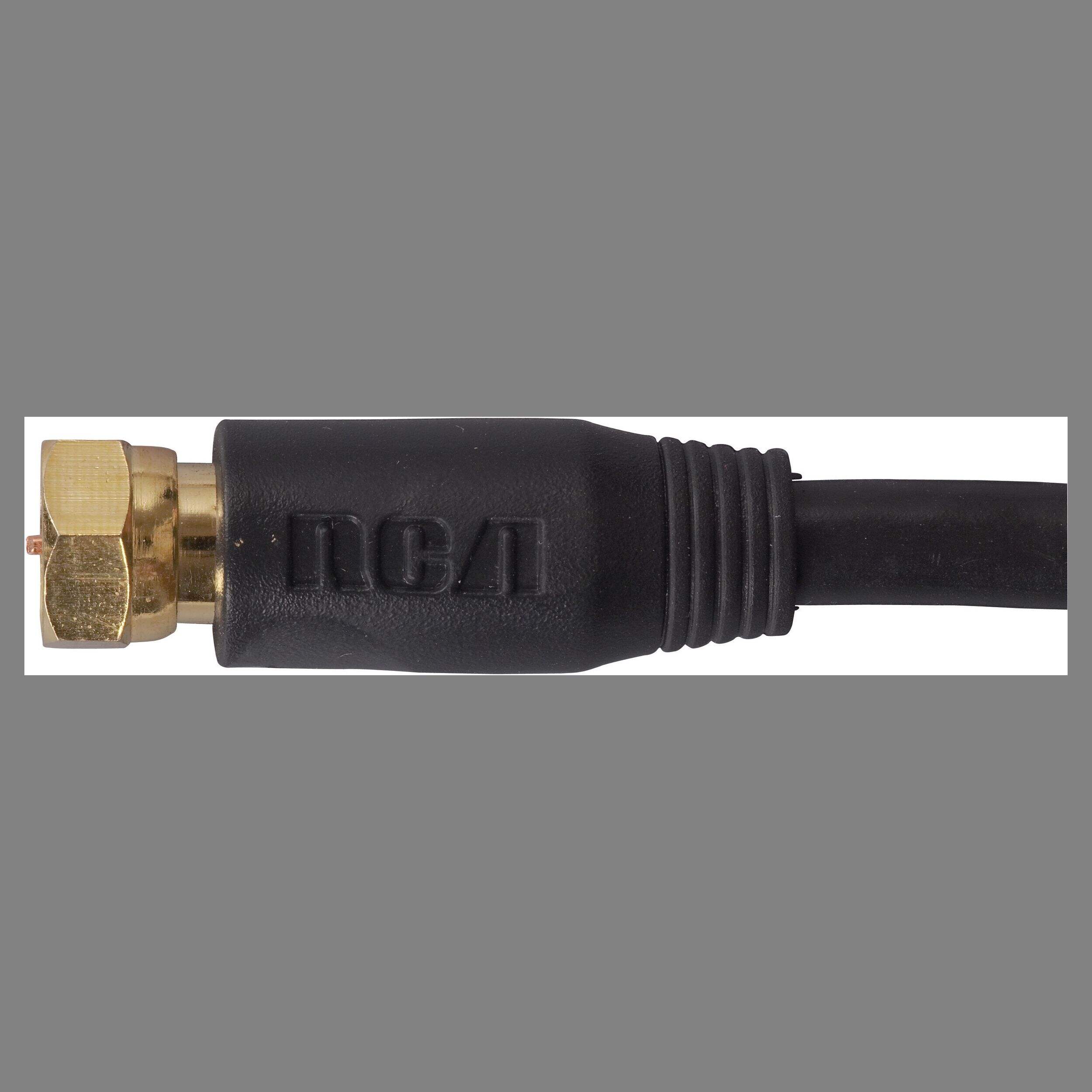The RCA Coaxial Cable, black in colour, features gold-plated ends for seamless connectivity. It is built with 18 AWG wire and offers a frequency of 2300 MHz. The cable is available in assorted lengths, providing versatile options to suit different needs, and is ideal for transmitting data, voice and video communications. The RCA brand ensures reliable design and functionality. This cable is ideal for a variety of applications.