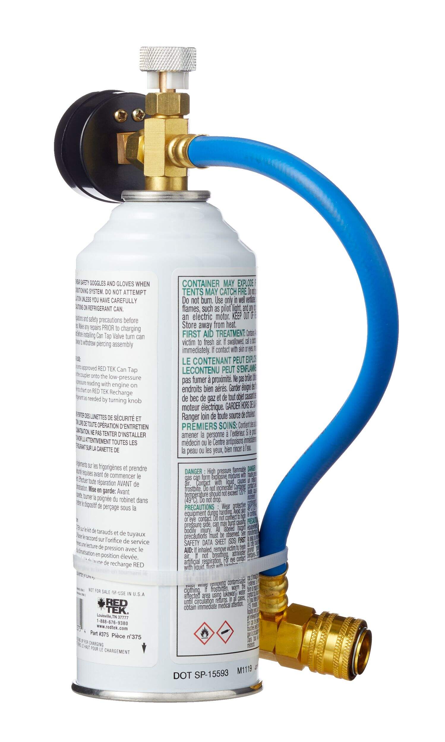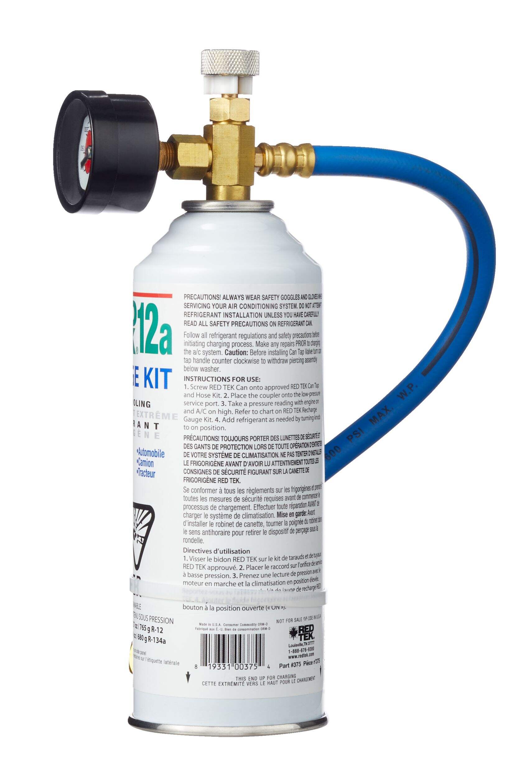 RED TEK 12a Extreme Cooling Recharge Kit is designed for consumers looking for a quick, on the go recharge kit to provide maximum cooling performance. RED TEK 12a is an environmentally friendly, cost effective, hydrocarbon refrigerant that is 100% natural organic, non-ozone depleting and non-global warming. RED TEK 12a is a DIY alternative refrigerant that is formulated exclusively for use in vehicles originally equipped with R134a and R-12 refrigerant. RED TEK 12a Extreme Cooling Recharge Kit comes pre-assembled, ready to use. Simply connect to the vehicles low side service port, remove the safety collar, and turn the control knob to open the self-sealing can valve.