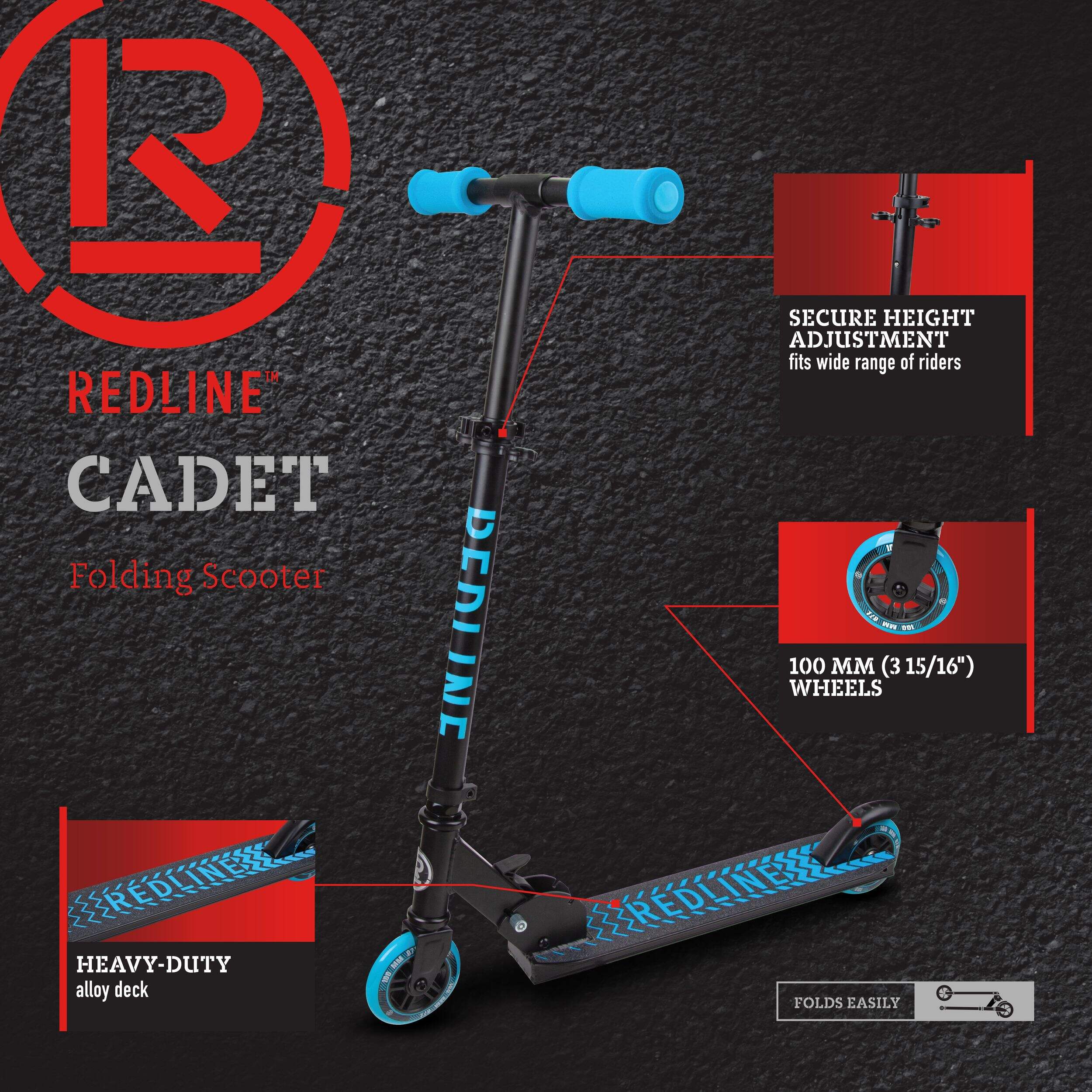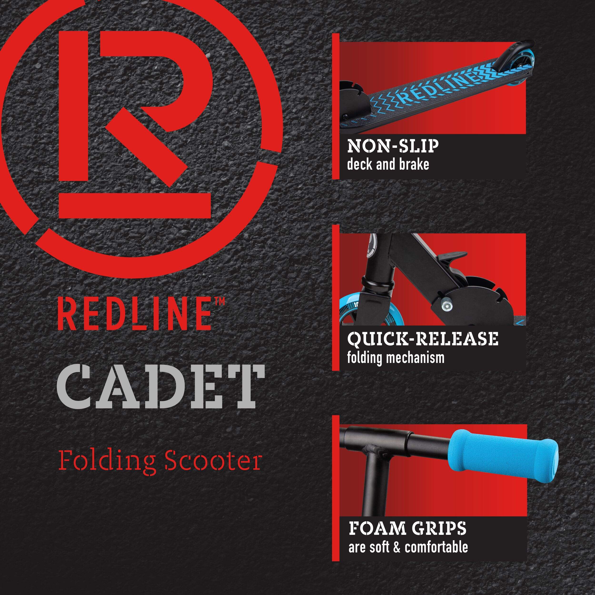 The Redline Cadet Collapsible Foldable Kick Scooter is designed for riders of all ages, offering a smooth and enjoyable ride with its 4-inch wheels and durable construction. The foldable design makes it easy to collapse and carry, making it perfect for commuting, casual rides, or fun outdoor adventures. With its sturdy frame and sleek black finish, the Redline Cadet Scooter provides both style and function, ensuring a reliable ride for both kids and adults.