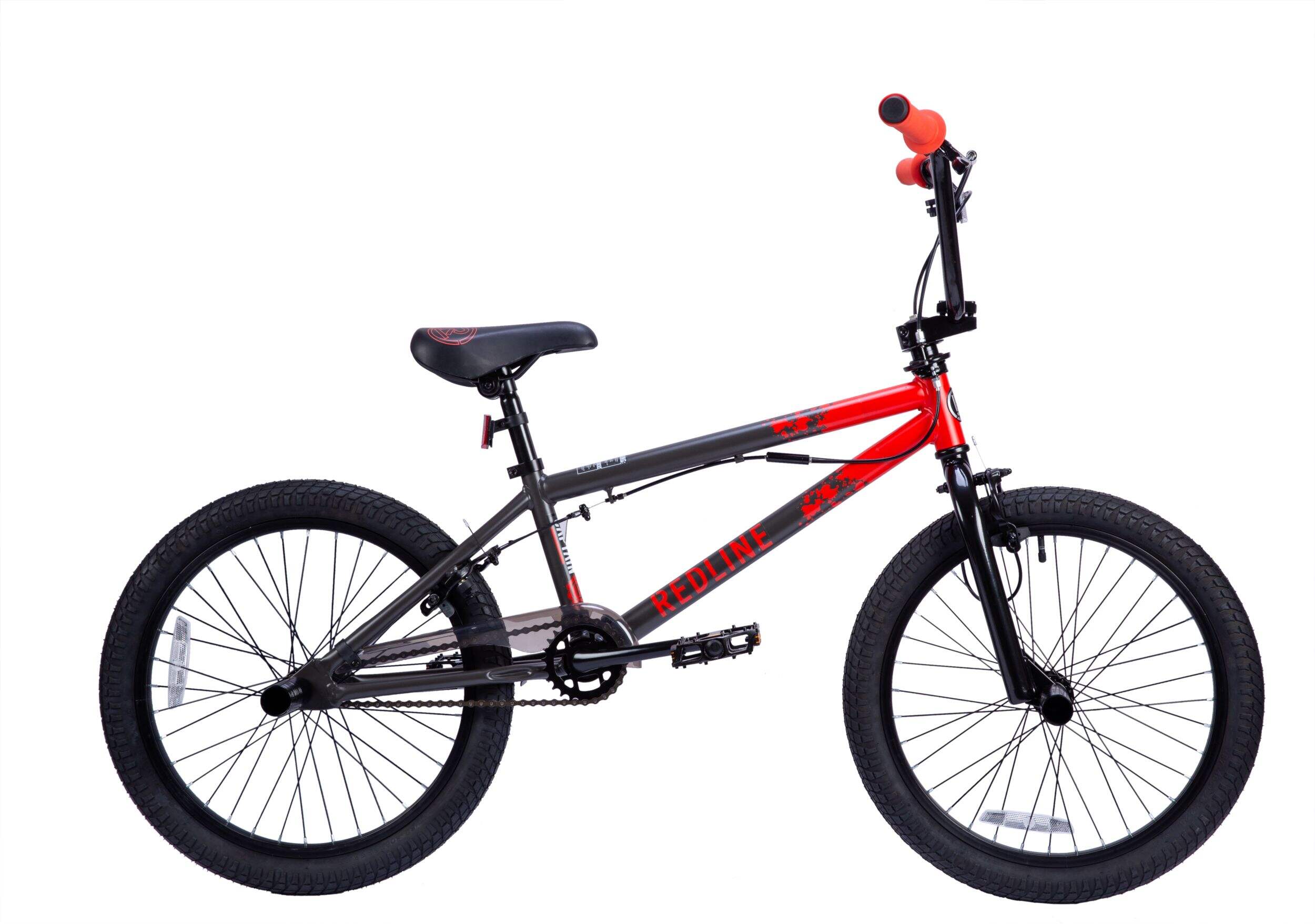 The Redline Captain BMX Bike is built for riders seeking a strong and durable BMX bike. Featuring a CO2-welded steel frame, this bike offers lasting strength and is designed for everyday riding, tricks and stunts. The 20-inch wheels provide a smooth and comfortable experience, while the front steel C-brake and rear steel U-brake ensure reliable stopping power and control. Perfect for BMX enthusiasts, this bike combines robust functionality with a striking red design.