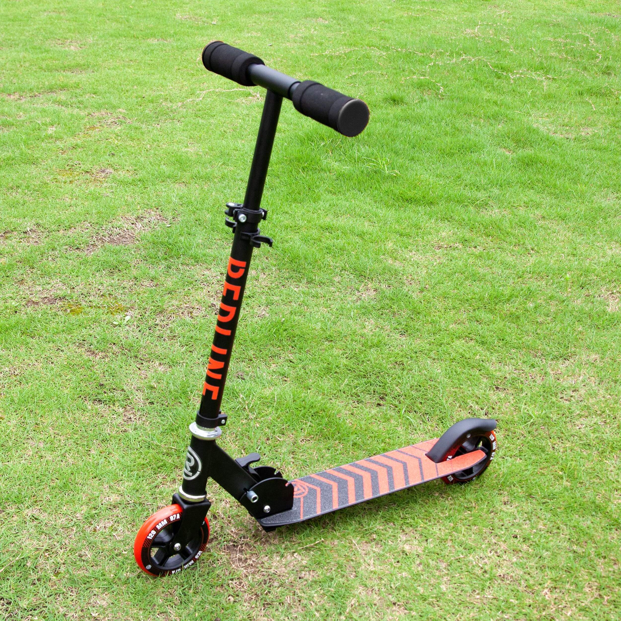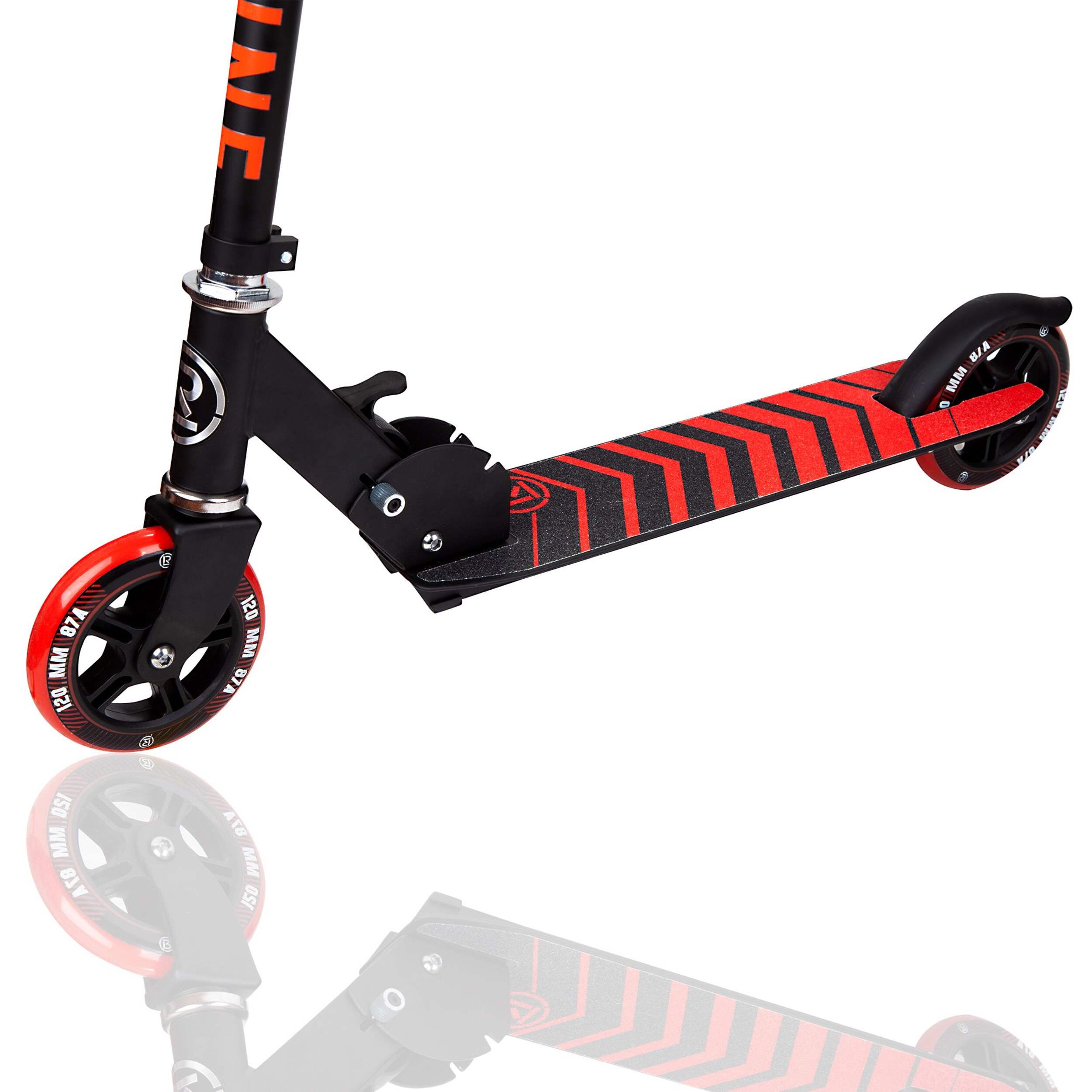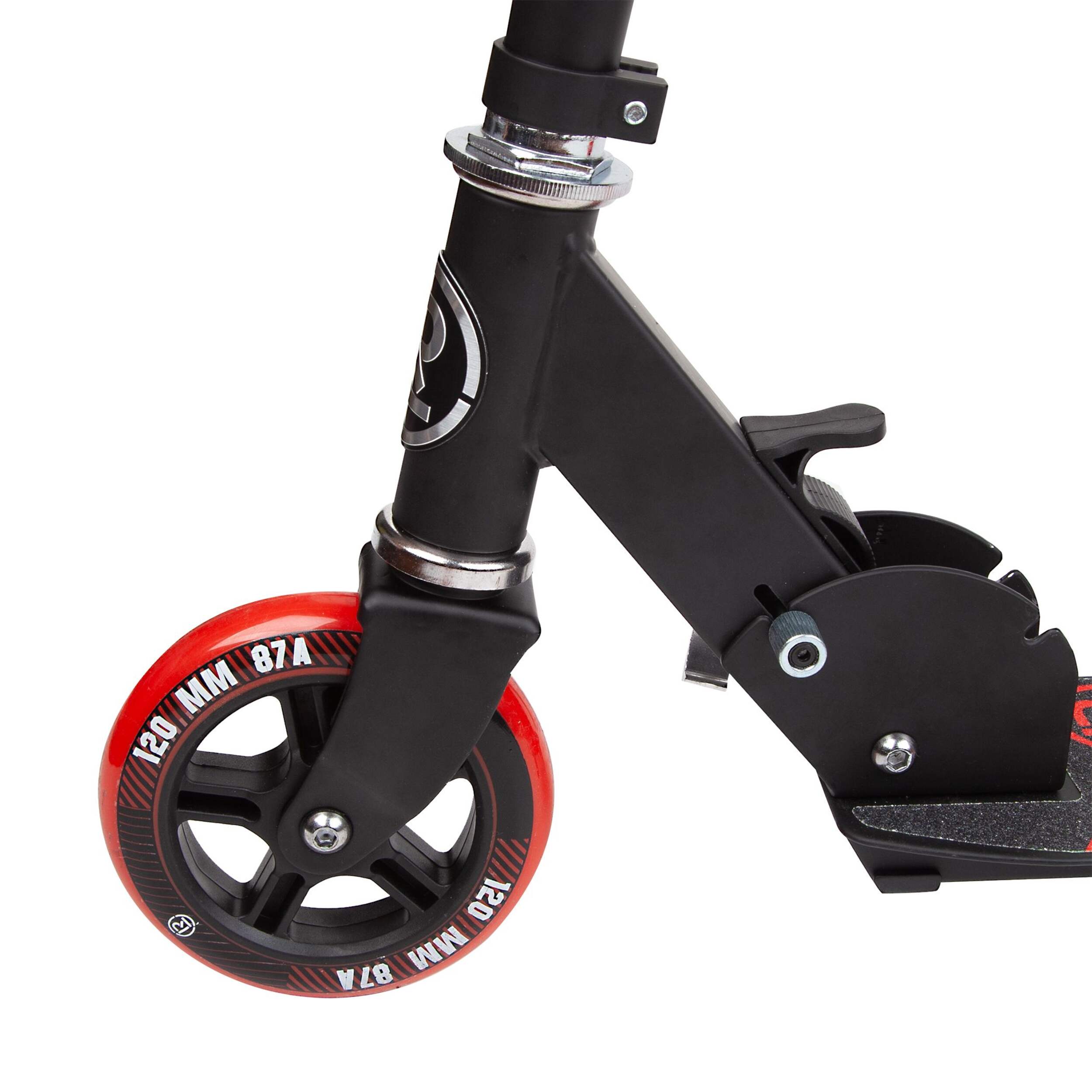 The Redline Folding Scooter offers a smooth and efficient ride with its large 120 mm wheels, making it perfect for commuting, outdoor fun, or casual rides. This scooter features a foldable design for easy storage and portability, ensuring it's convenient for riders on the go. With adjustable handlebars, the Redline Folding Scooter provides a comfortable fit for both kids and adults. Its sturdy construction and sleek black design make it a reliable and stylish choice for riders of all ages, offering stability and control on sidewalks, pathways, and other flat surfaces.
