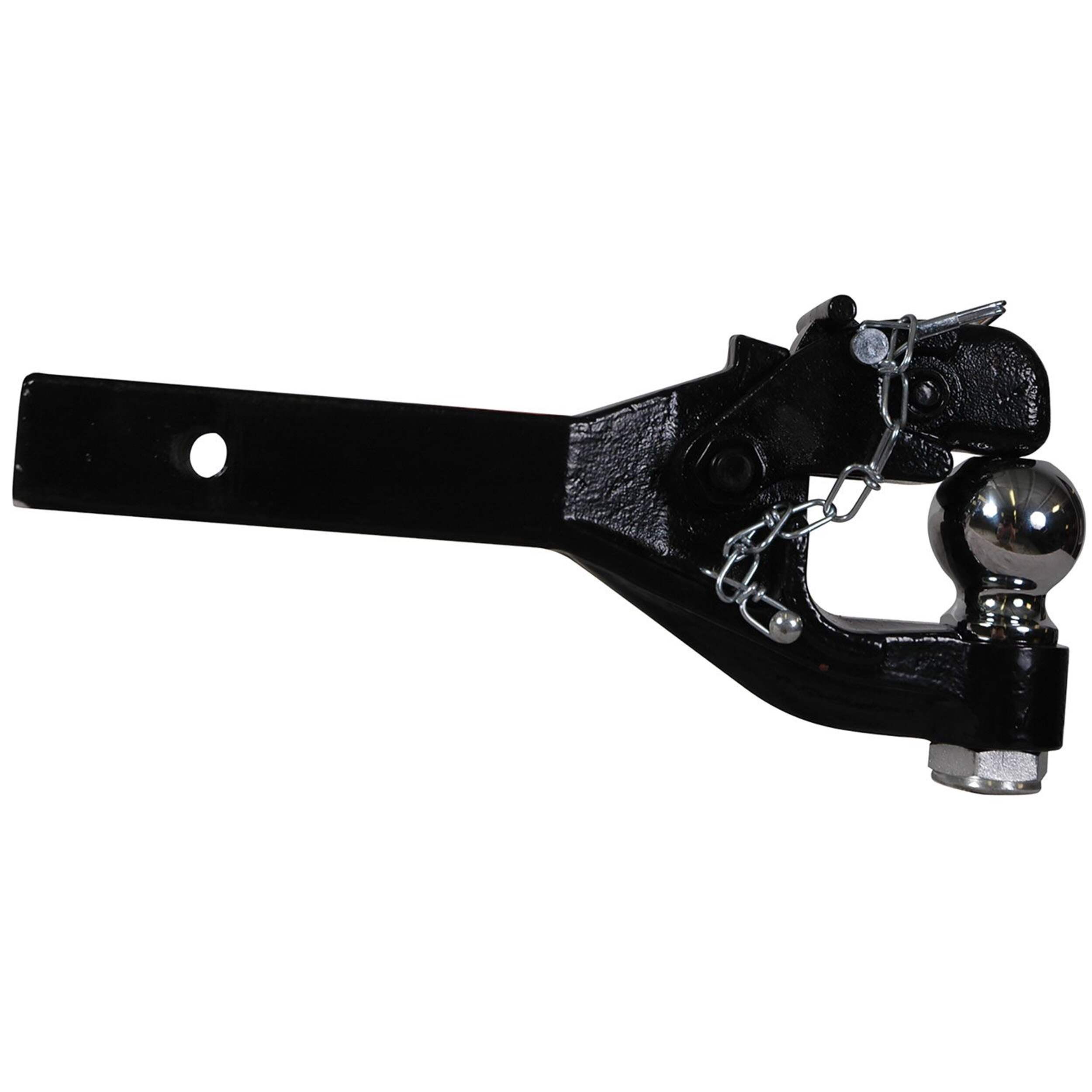 For ease of use, the REESE Integrated Ball and Pintle Hook is designed to allow you to tow trailers without having to change hitches. Featuring a high towing capacity, this ball and pintle hook mount also comes with a safety pin and heavy-duty mounting hardware, so you can gear up and go. The heavy-duty, corrosion-resistant design delivers lasting durability through extreme weather and the black finish offers a seamless look to complement your vehicle.