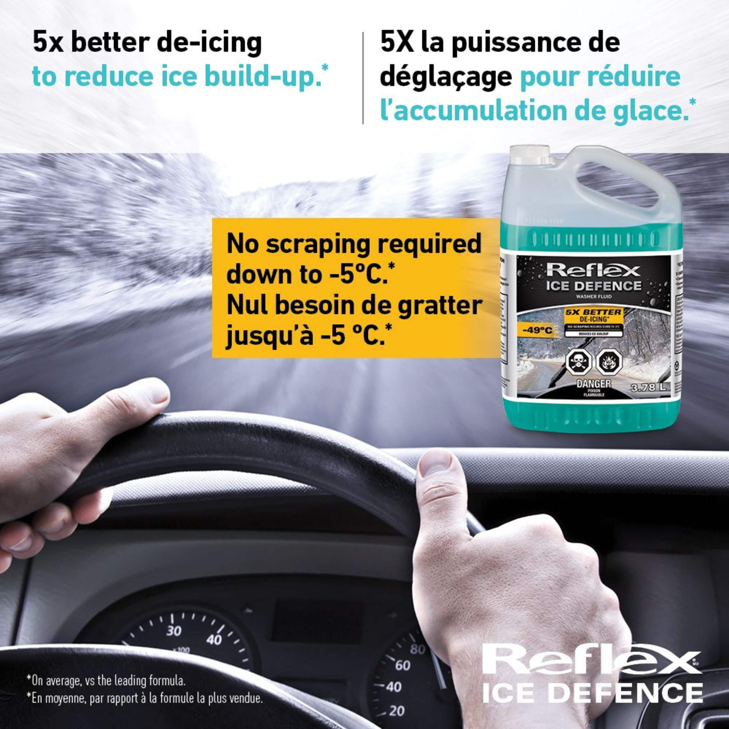 The Reflex WinterFx Windshield Washer Fluid is an essential for winter driving. This -49°C washer fluid provides five times the de-icing power of leading brands, reducing dangerous ice build-up in frigid Canadian conditions. The windshield washer fluid melts away frost down to -5°C, eliminating the need for scraping. Its advanced polymer technology repels water for improved visibility, while the cleaning agents wipe away grime, salt, dirt and bugs with ease.