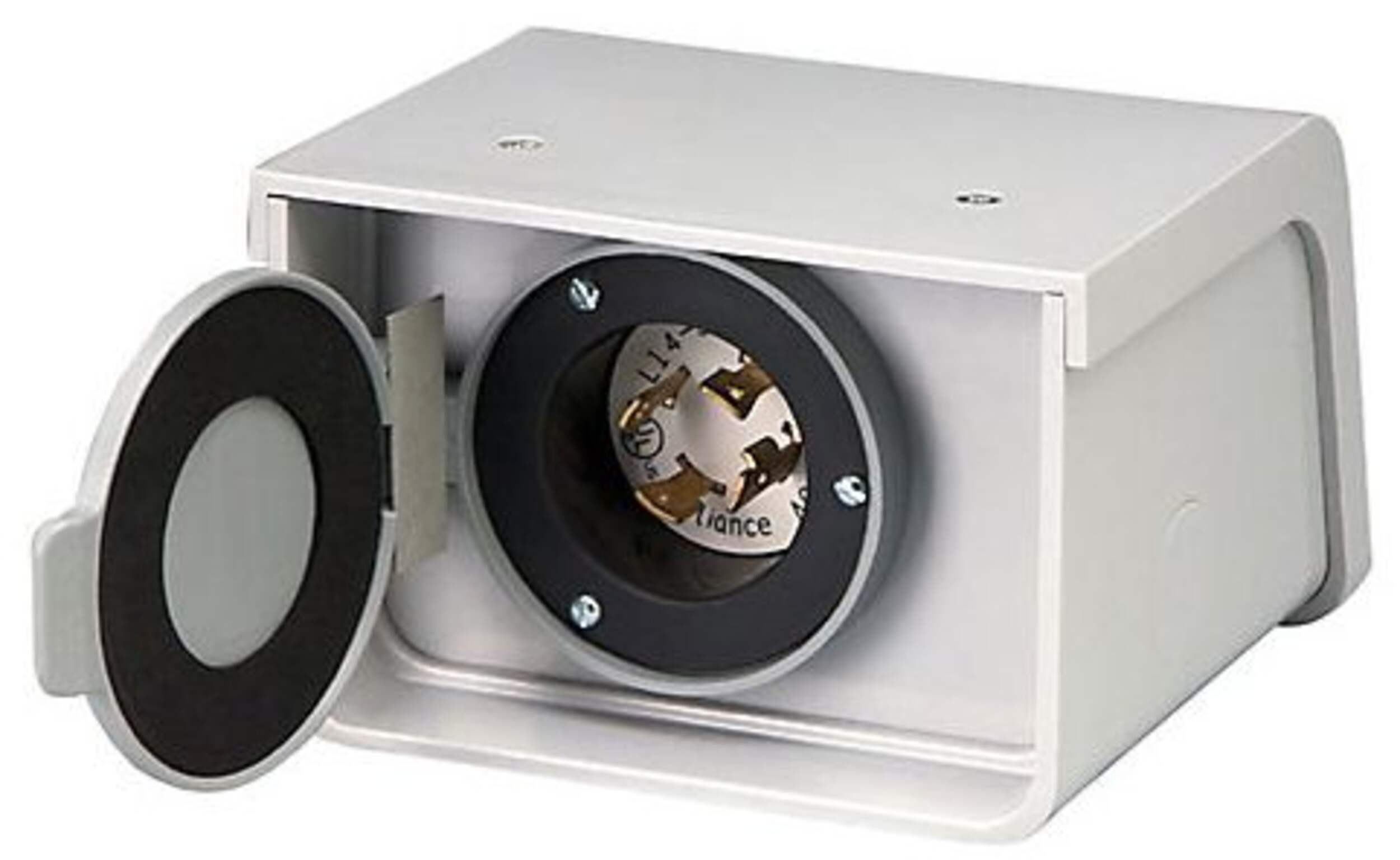 Bottom-mounted L14-30 power inlet with a protective flip cover for added convenience