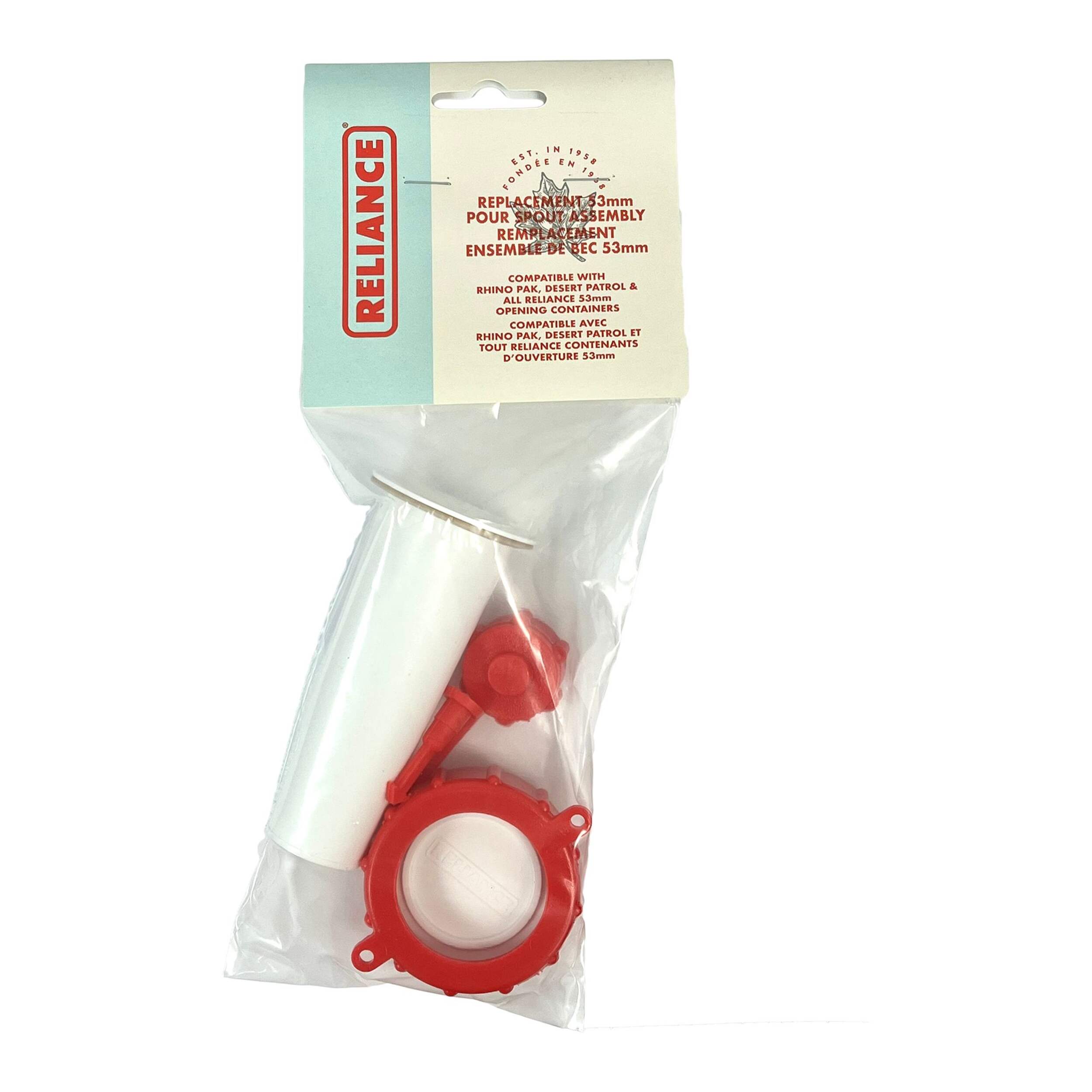 The Reliance Replacement Pour Spout Assembly will fit onto any Reliance container with a 53 mm opening