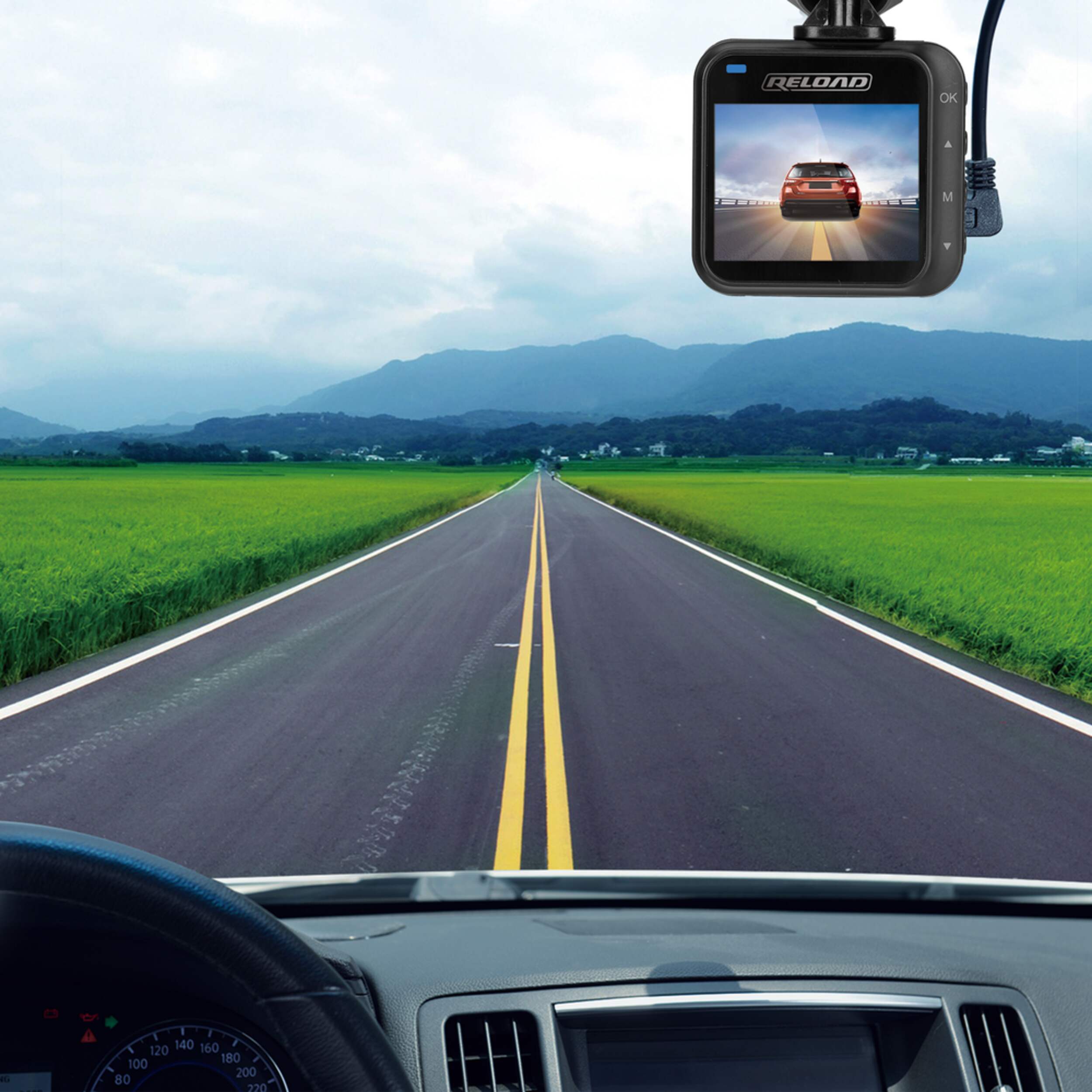 Capture footage in front of your vehicle with the Reload 720p HD Dashboard Camera