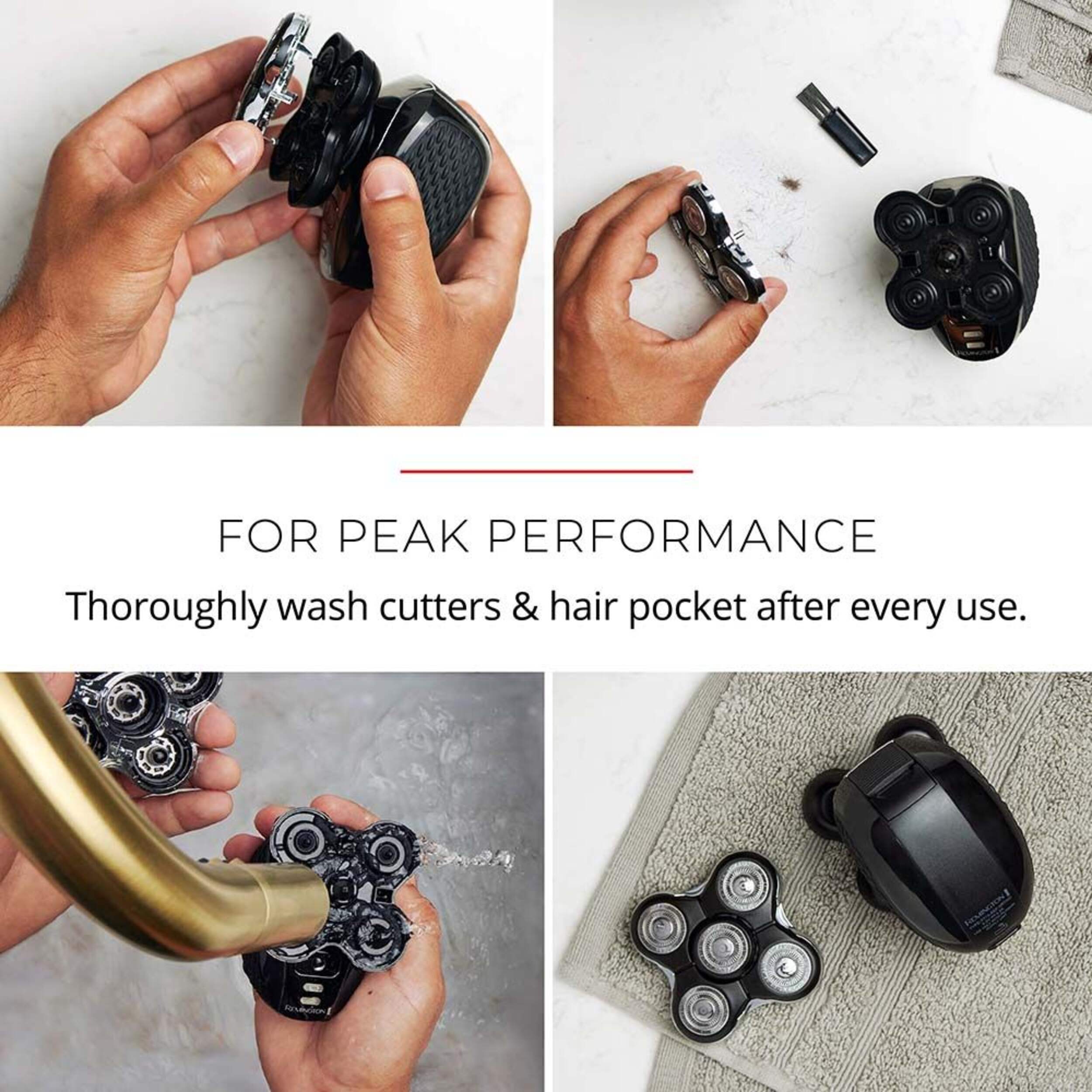 The REMINGTON® Balder Pro Head Shaver is designed to make head shaving quick, efficient, and comfortable, helping you maintain a smooth, freshly shaven head in just a couple of minutes. With a unique design that contours to every curve of your head, it delivers maximum skin contact for an even, close shave. Perfect for on-the-go lifestyles or at-home grooming, this versatile shaver can be used in the shower or with shaving foam, and cleanup is a breeze with its easy-to-empty hair chamber.