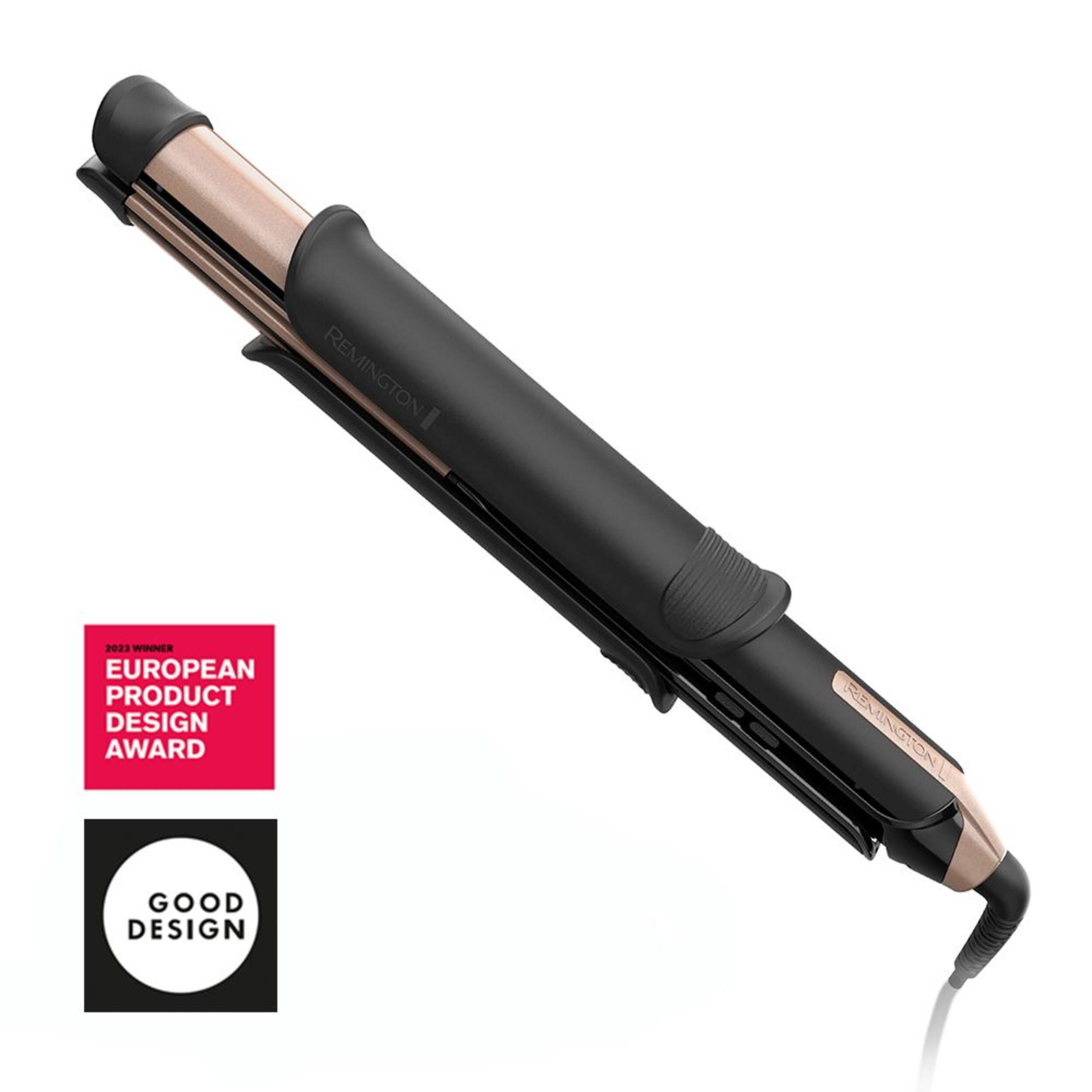 The Remington ONE Flat Iron + Curler redefines styling versatility with its innovative design. This tool ensures one-pass styling, saving you time without sacrificing results. It caters to all hair types, while the ultra-fast 20-second heat-up time makes it perfect for busy mornings. The LED display shows the exact temperature and styling mode, and the flat swivel cord adds flexibility during use. Elevate your hair styling routine with the Remington ONE™.