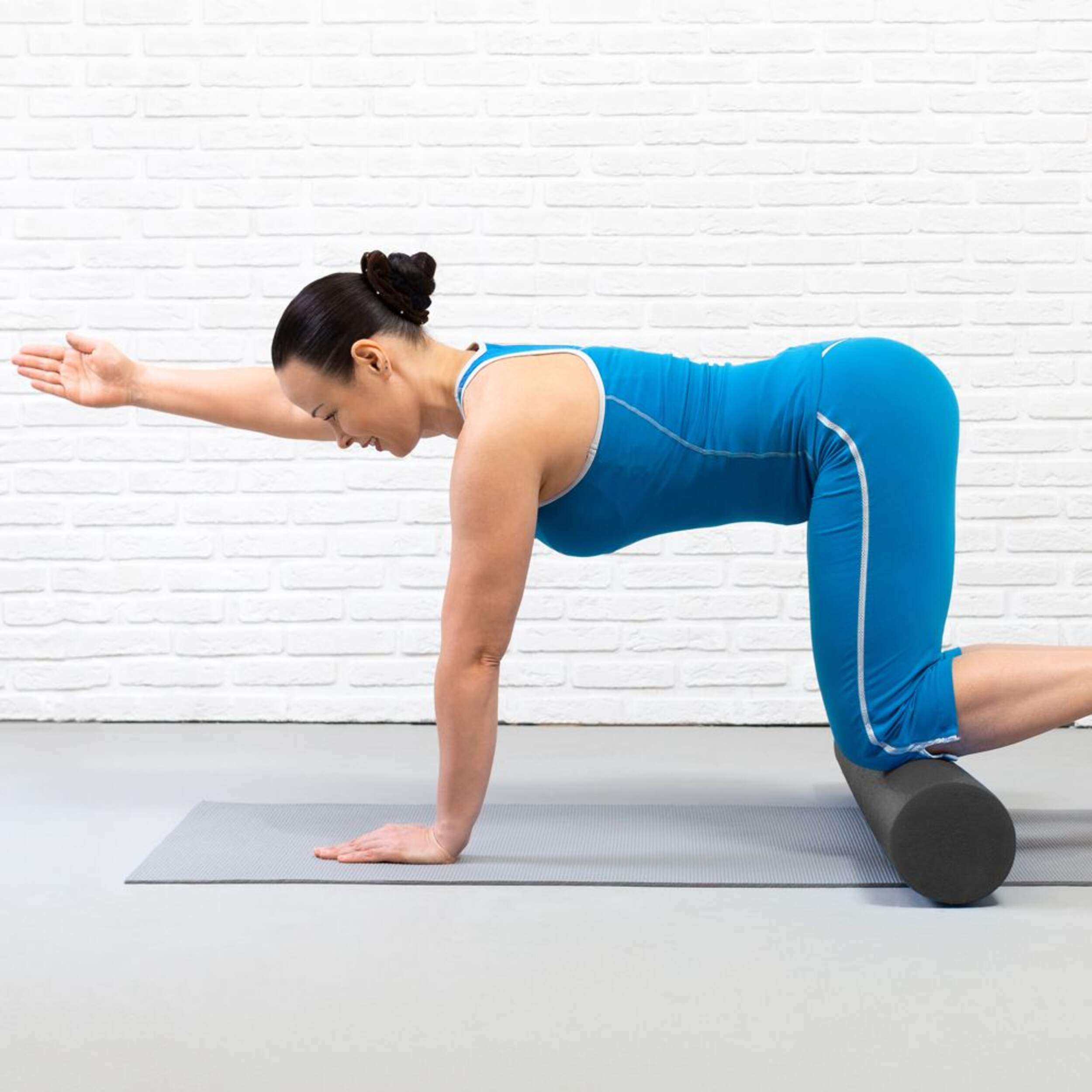 Works on lower back, IT bands, calves and hamstrings