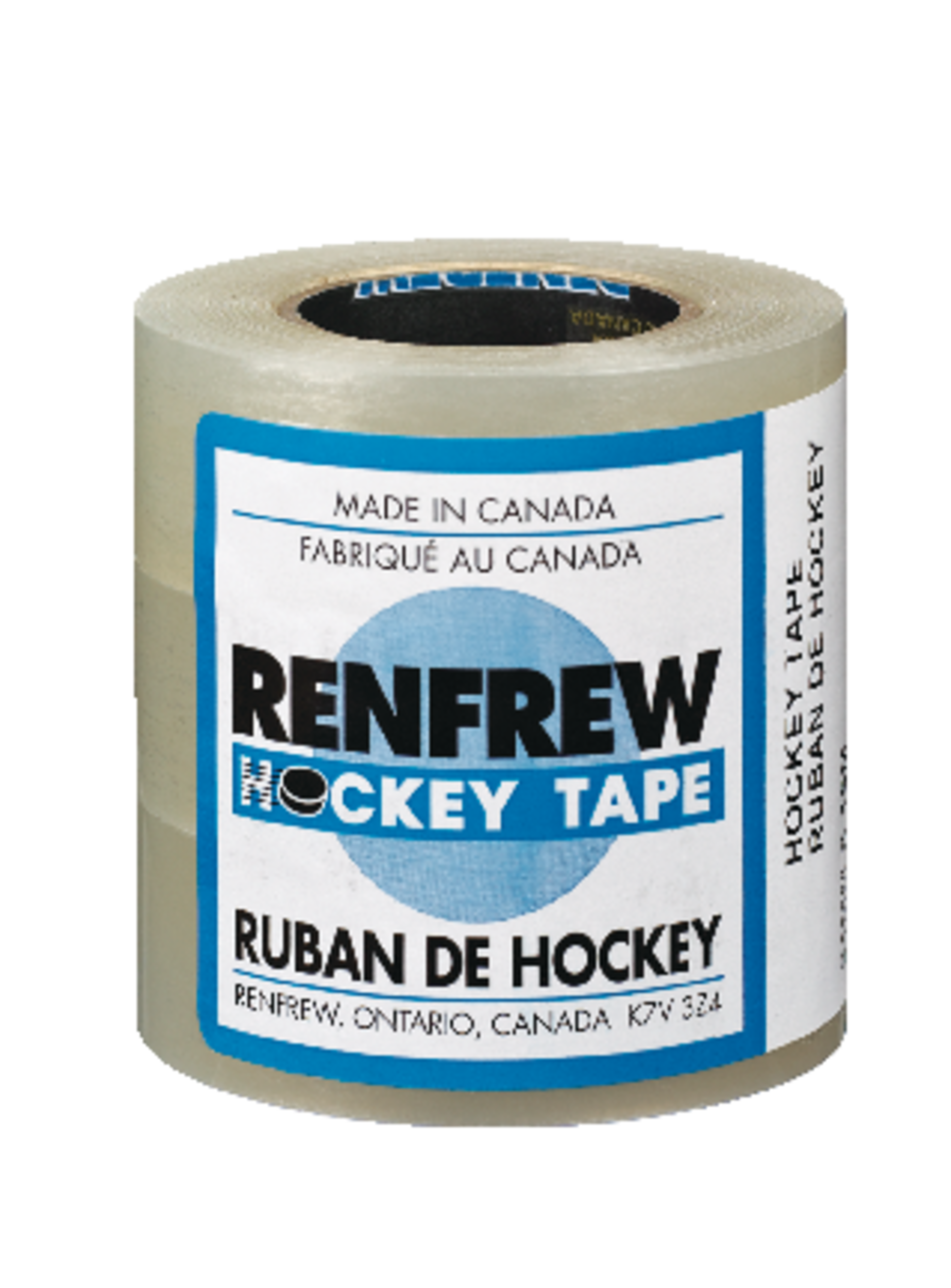 Renfrew Hockey Tape is a robust, elastic tape designed to hold equipment securely in place, allowing players to skate with comfort. Primarily used for stabilizing hockey shin guards, it's also versatile for other equipment. This water-resistant product requires less frequent re-taping, offering a practical solution. Each pack contains three rolls, measuring 24-mm x 15-m. With a shelf life of one year from shipment date, it is recommended to store it below 24°C in a cool, dry place, on end and away from direct sunlight for optimal preservation.