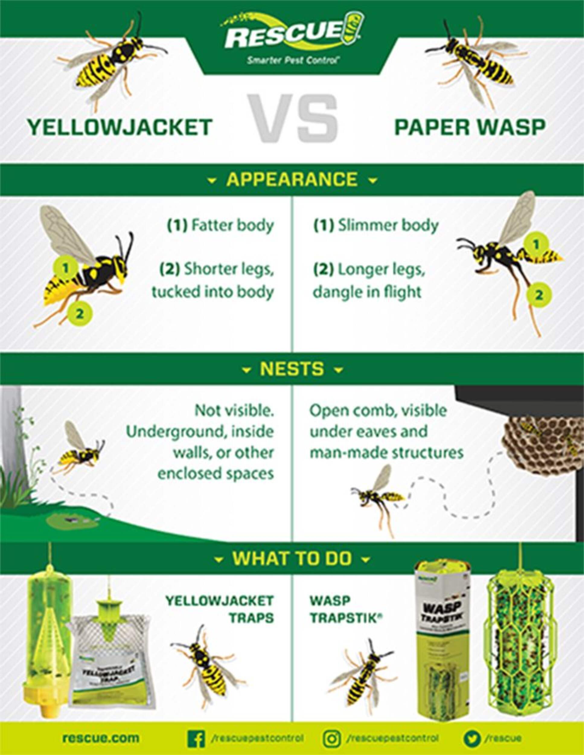 RESCUE! Disposable Western Yellowjacket Trap catches multiple species: Aerial Yellowjacket (Dolichovespula arenaria), Common Yellowjacket (Vespula alascensis), German Yellowjacket (Vespula germanica), Southern Yellowjacket (Vespula squamosa), Tansition Yellowjacket (Vespula flavopilosa) and Northeastern Yellowjacket (Vespula vidua)