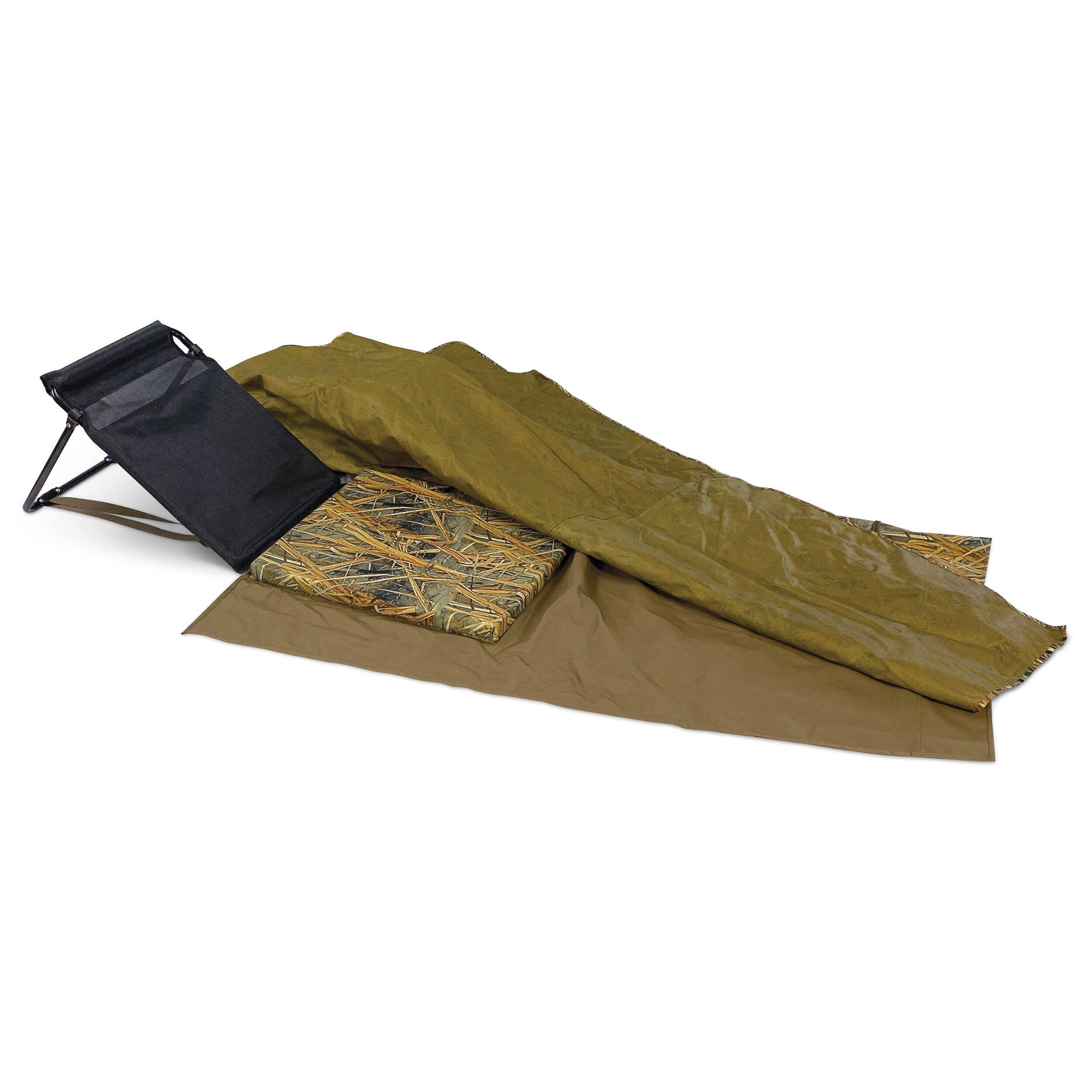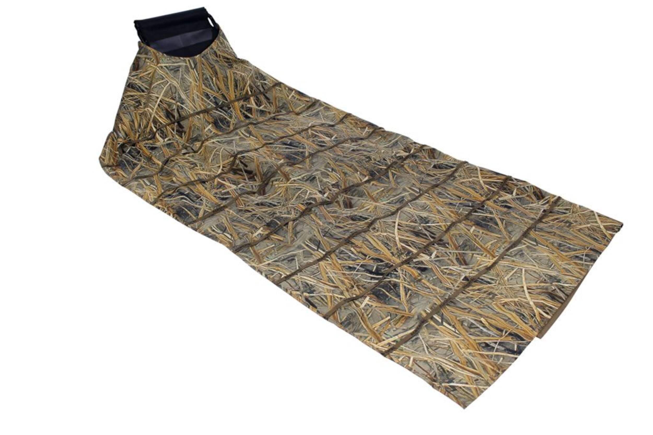 This Rhino Beavertail Sniper Laydown Blind Wetlands Camo is all you need for low profile, moisture-resistant concealment and all-day comfort. It's extremely lightweight and portable with a waterproof bottom, built-in backrest and a cushioned headrest.