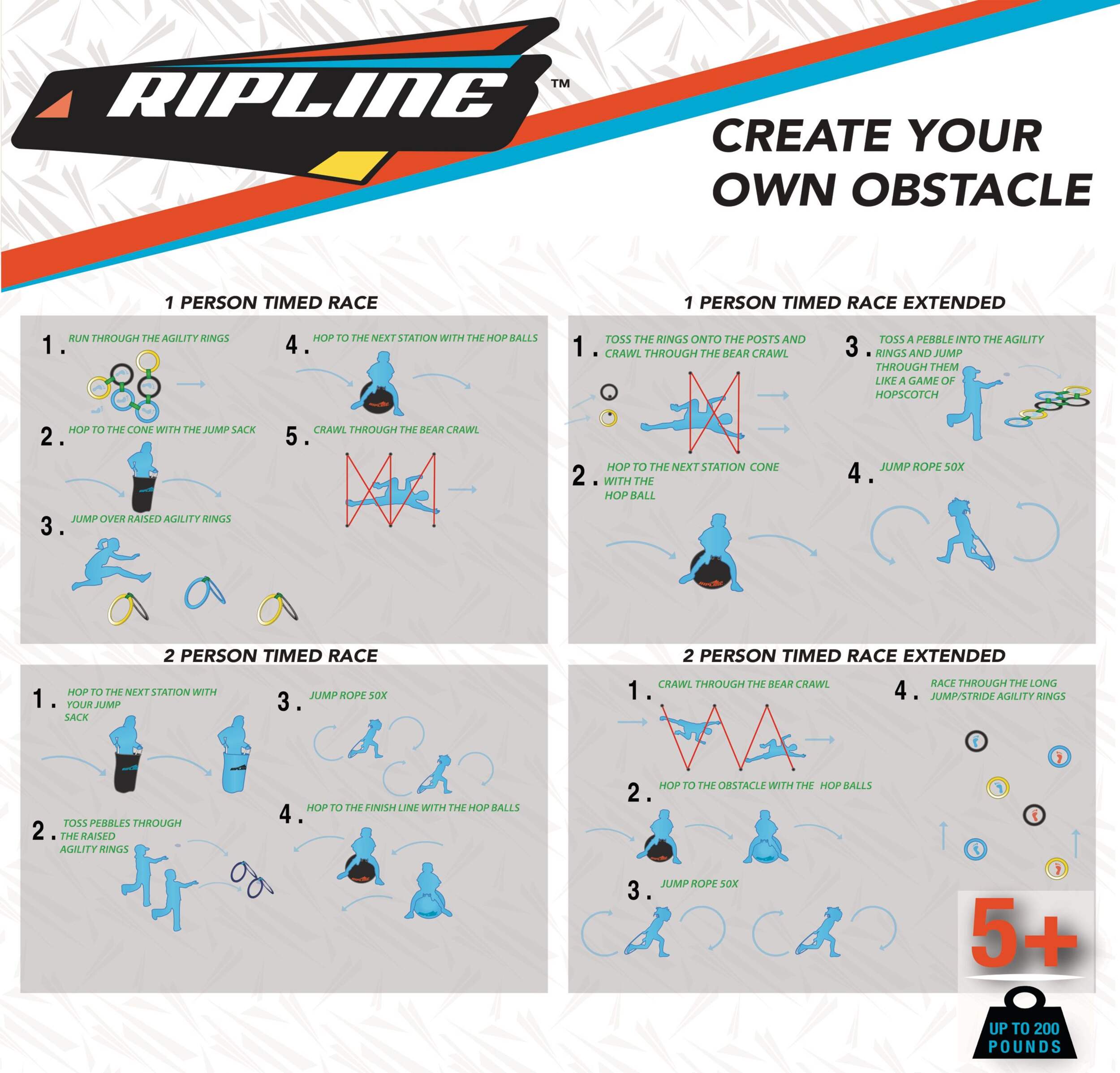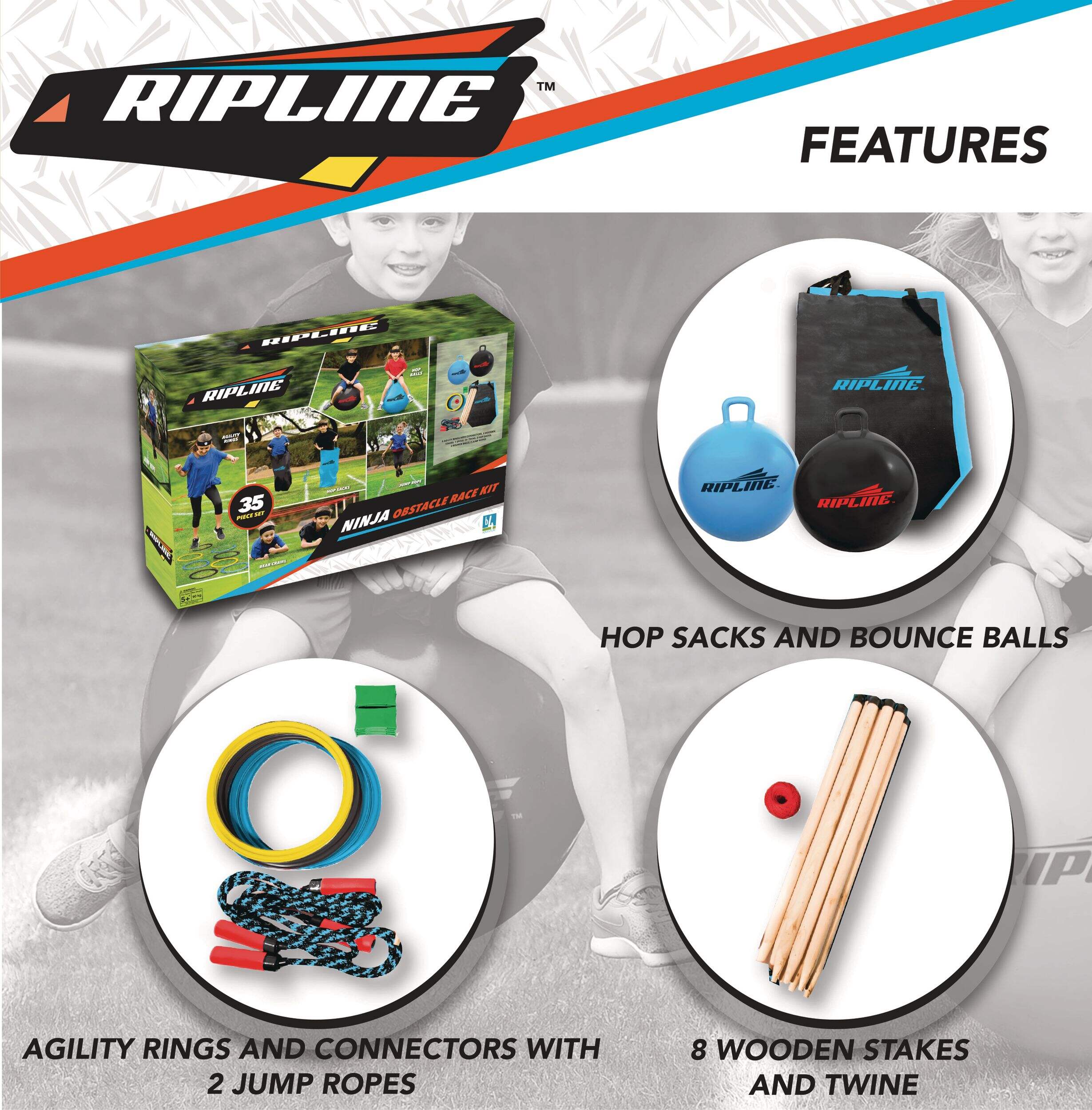 Ripline Ninja Obstacle Course is a complete 35 piece set that allows for dozens of different set-ups