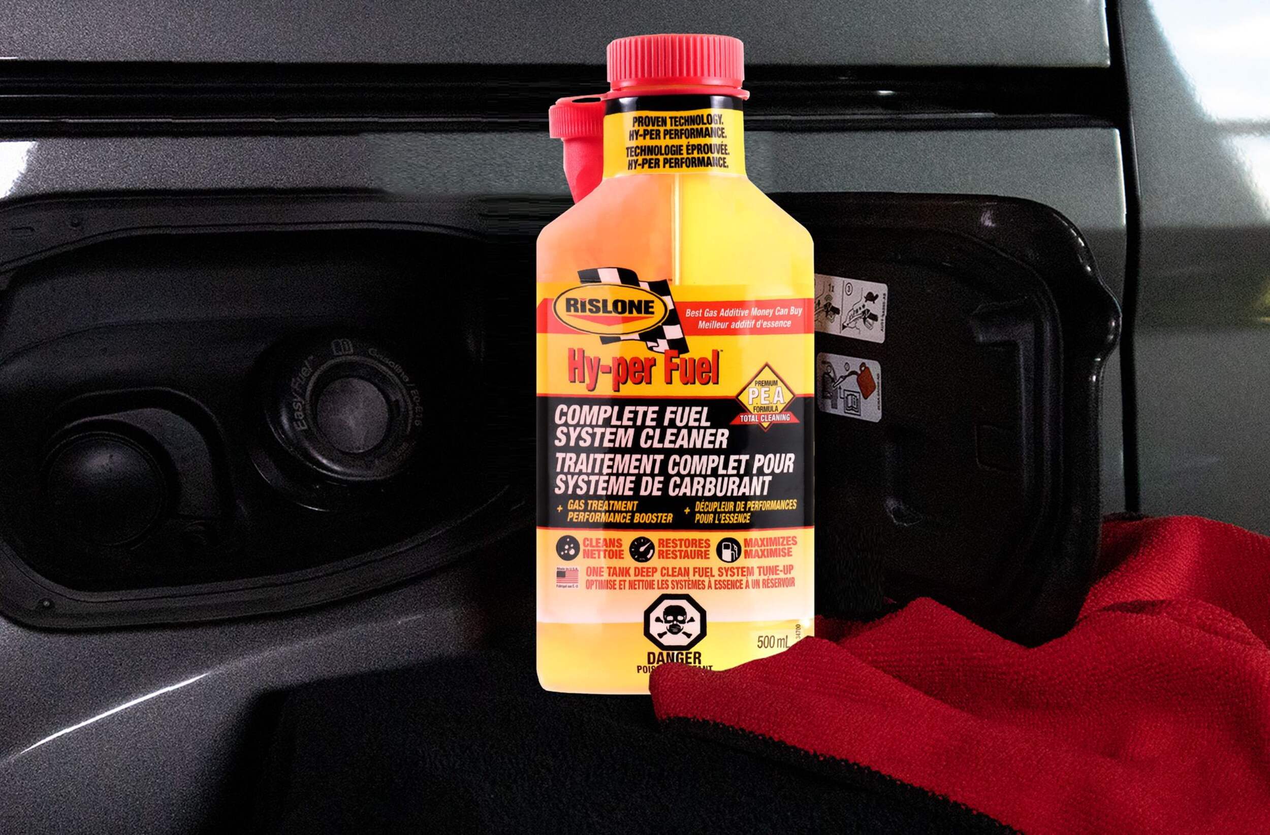 Rislone Hy-per Fuel Complete Fuel System Cleaner Gas improves the quality of gas by increasing its cleaning ability, adding lubrication, removing contaminants and reducing spark knock