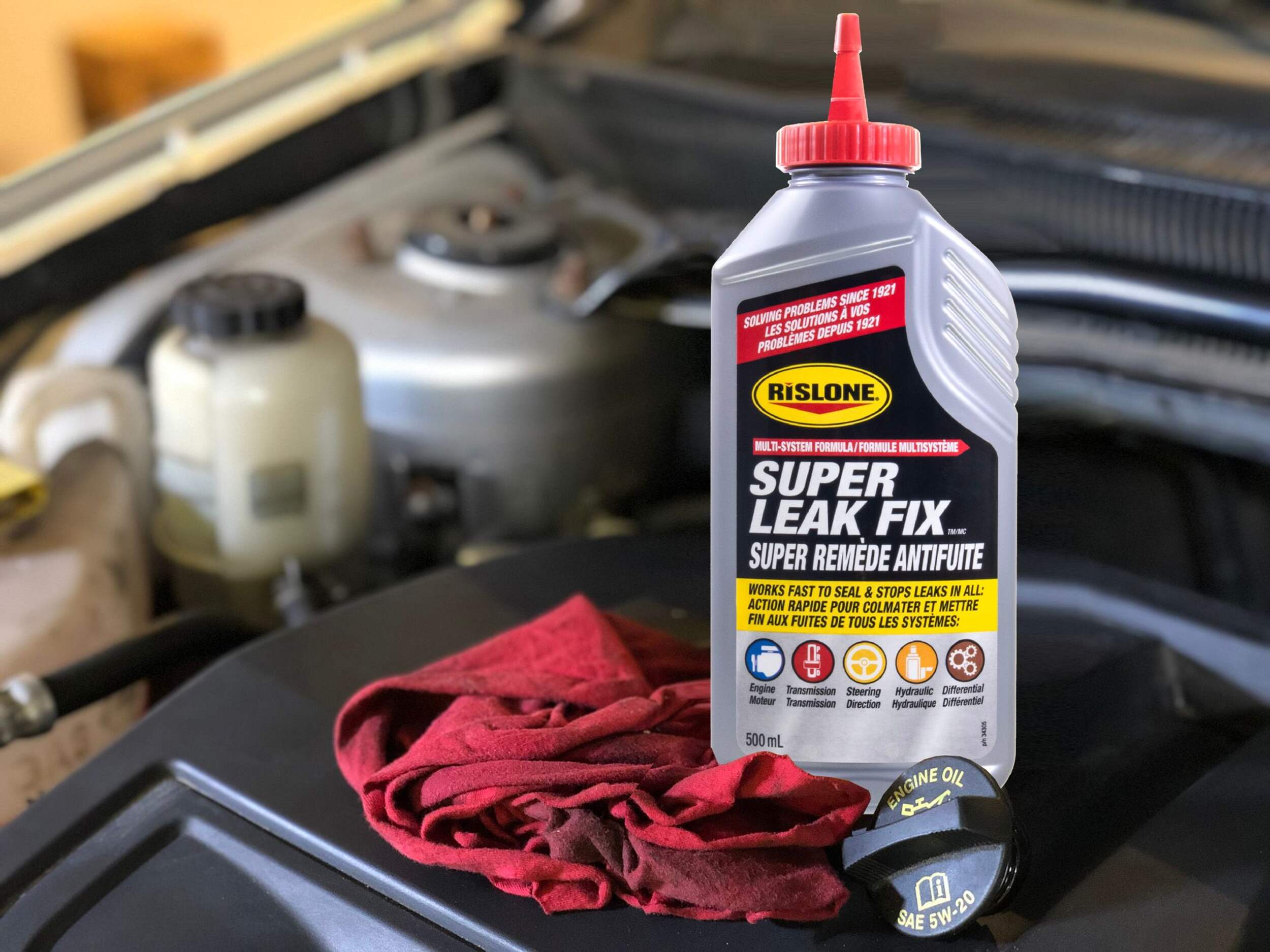 Rislone Super Leak Fix is a highly advanced multi-system formula specifically designed to work quickly and effectively stop leaks in engines, transmissions, power steering systems, hydraulics, and gears/axles. If you have a leak, there’s a strong possibility that this product can fix it. Rislone Super Leak Fix truly embodies the concept of a one-product repair solution and is one of our most technologically advanced formulas.