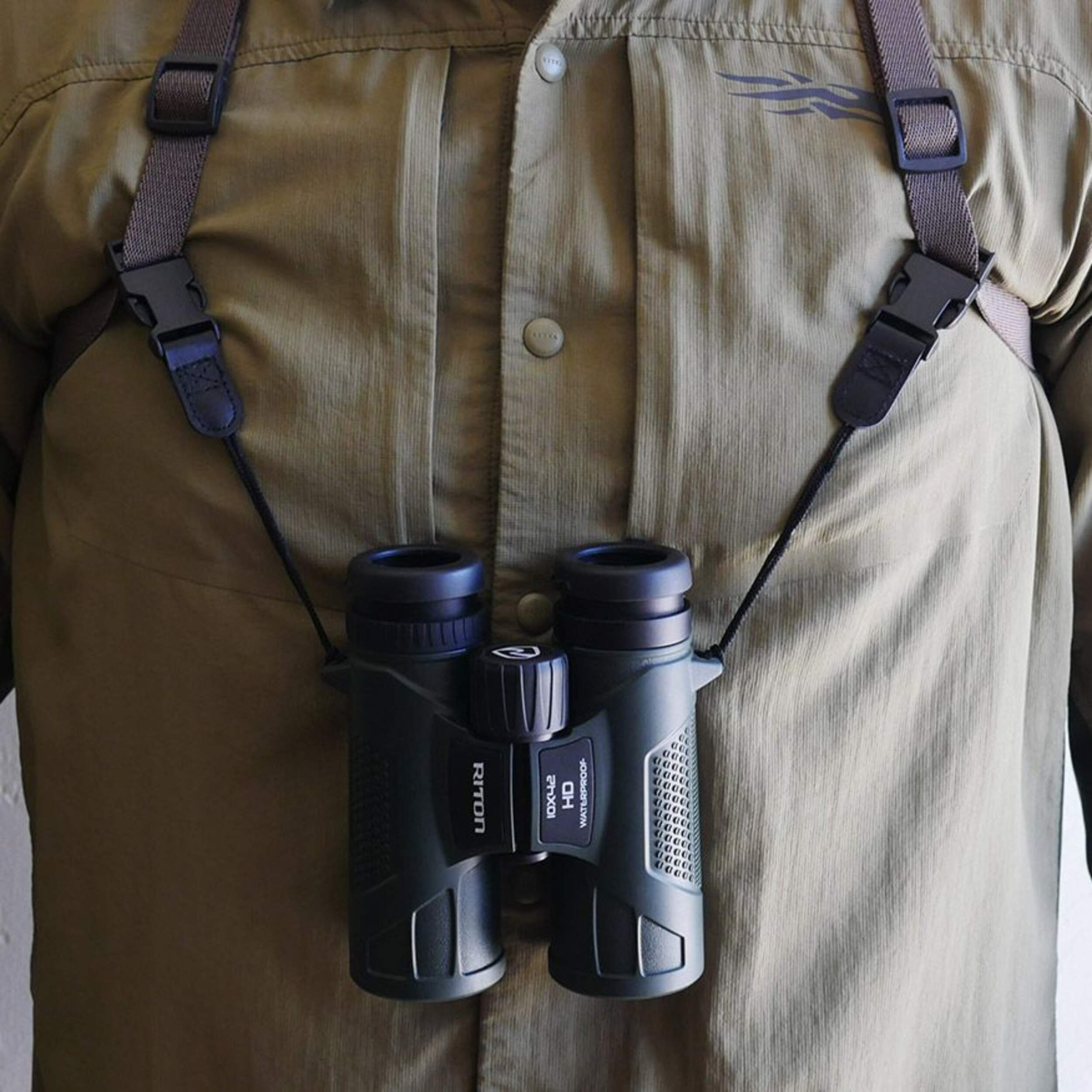 The Riton Binocular Harness features comfort straps to allow the binoculars to slide up and flex out when in use with easy-to-use quick release connectors keep binoculars secure, yet allow fast removal when necessary. The harness works for all sizes of binoculars, cameras, or rangefinders, and is fully adjustable.