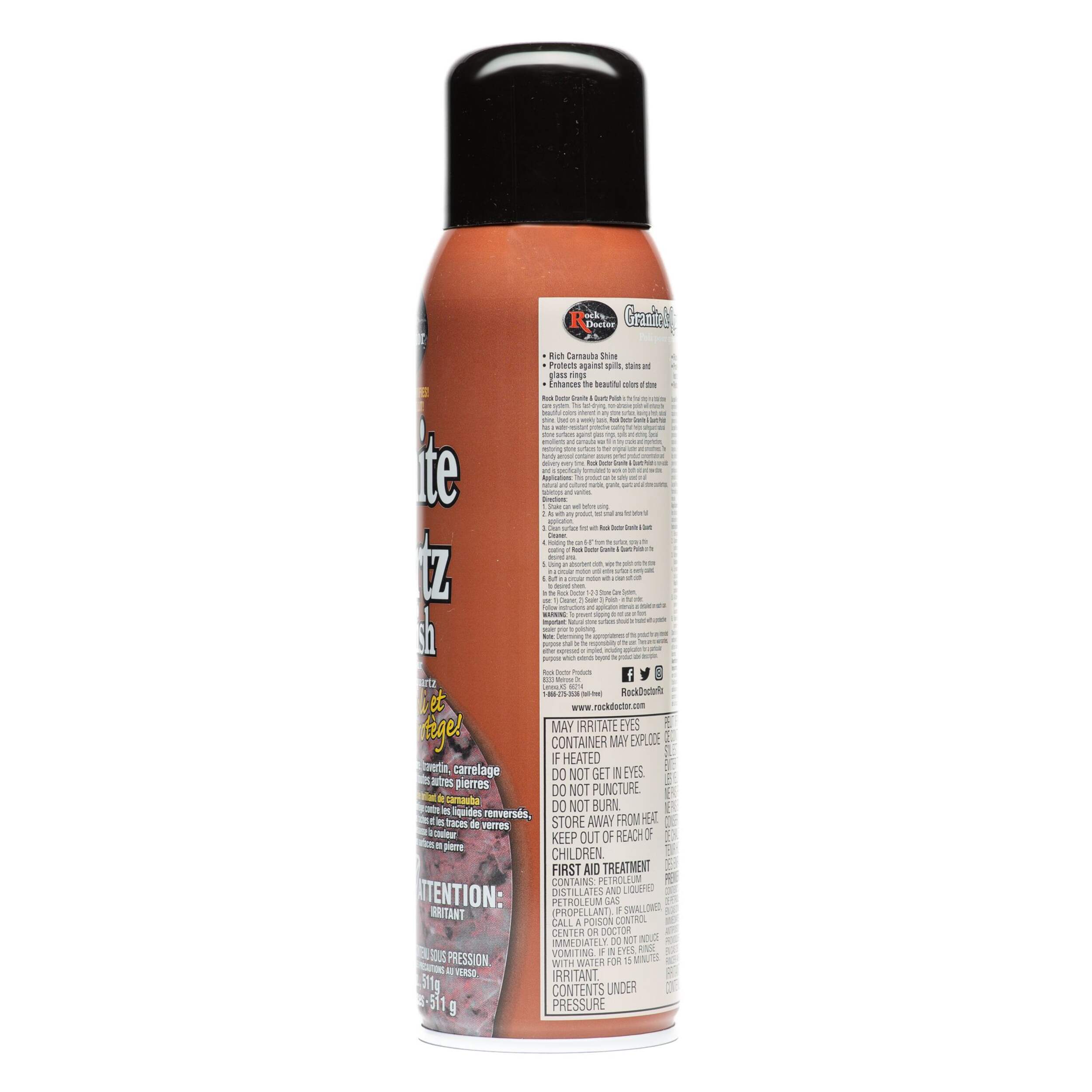 Rock Doctor Granite & Quartz Polish is the final step in your total stone care system. This fast-drying, non-abrasive granite polish will enhance the beautiful colors inherent in your stone surface, leaving a fresh, natural shine.