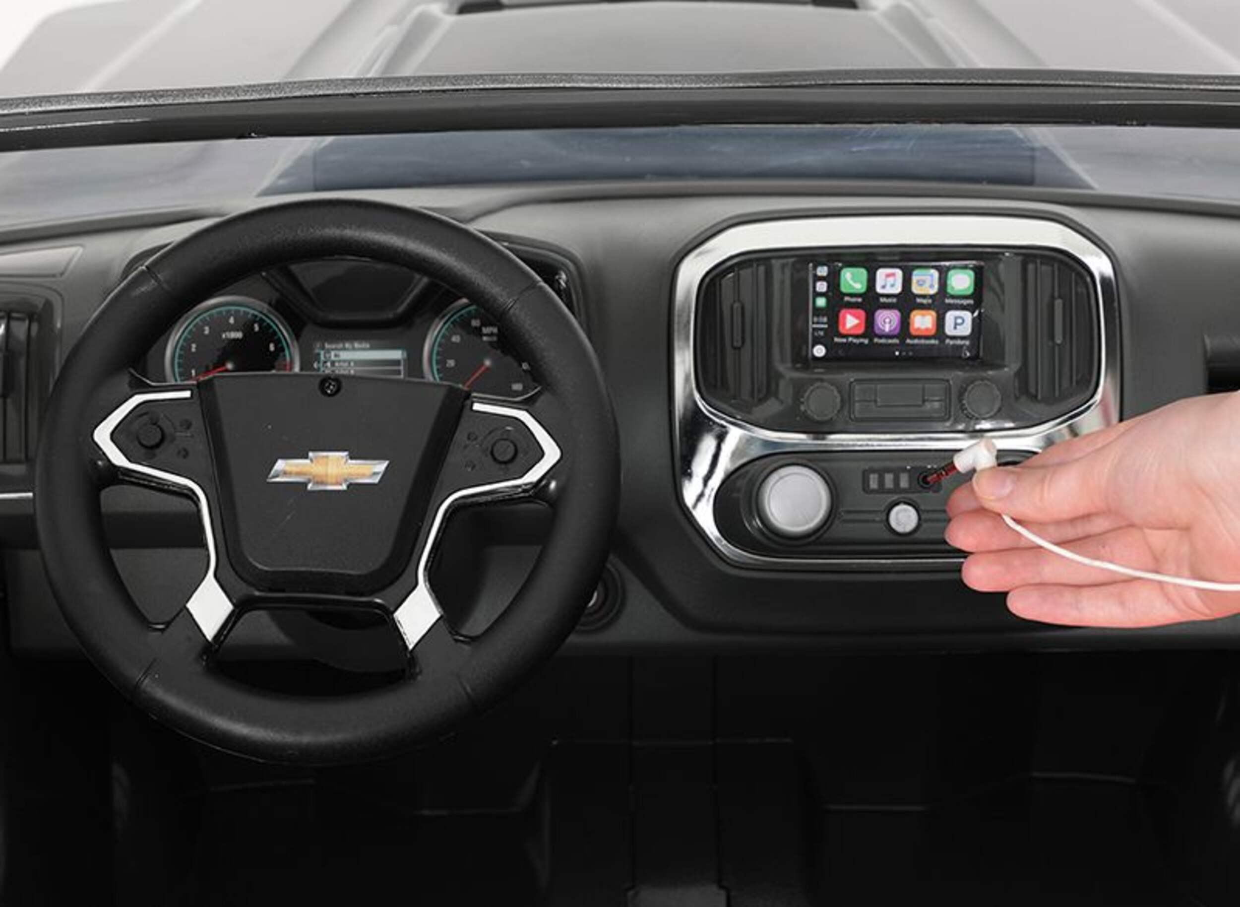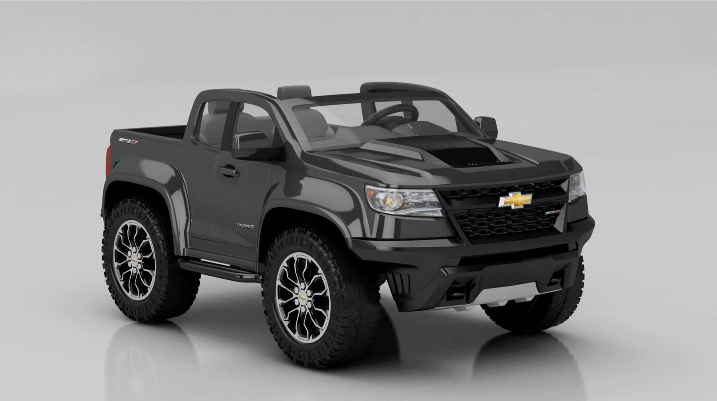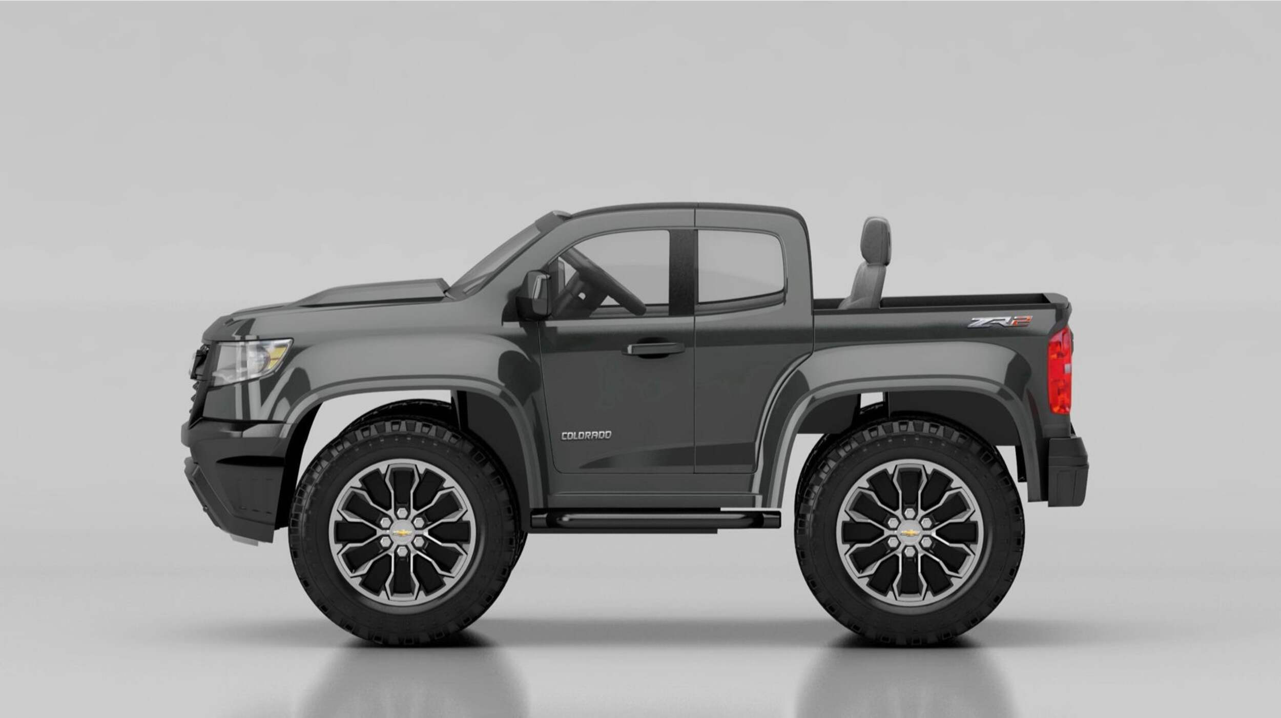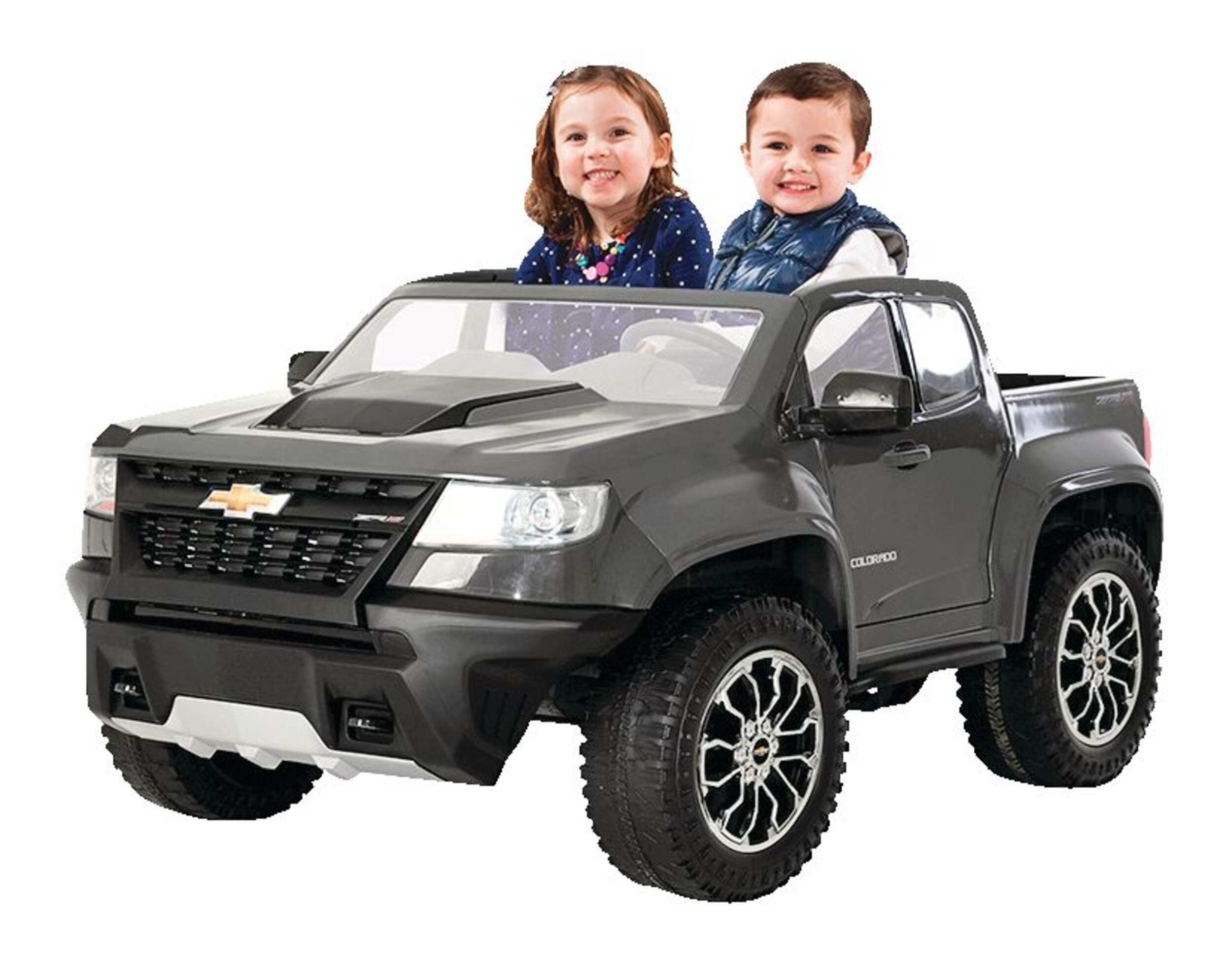 The ultimate ride-on toy for action-packed adventures. This miniature Chevrolet Colorado features a realistic design with working sounds, opening doors and tailgate, and integrated MP3 player with speakers that allow your little adventurer to feel like they're really behind the wheel. Rubber traction strips on the tyres and forward driving speeds up to 8km/h mean your child can zoom around the backyard in style, while LED headlights and chrome detailing keep things looking sharp. Best of all, the 12V battery and charger are included so driving fun is never more than an outlet away.