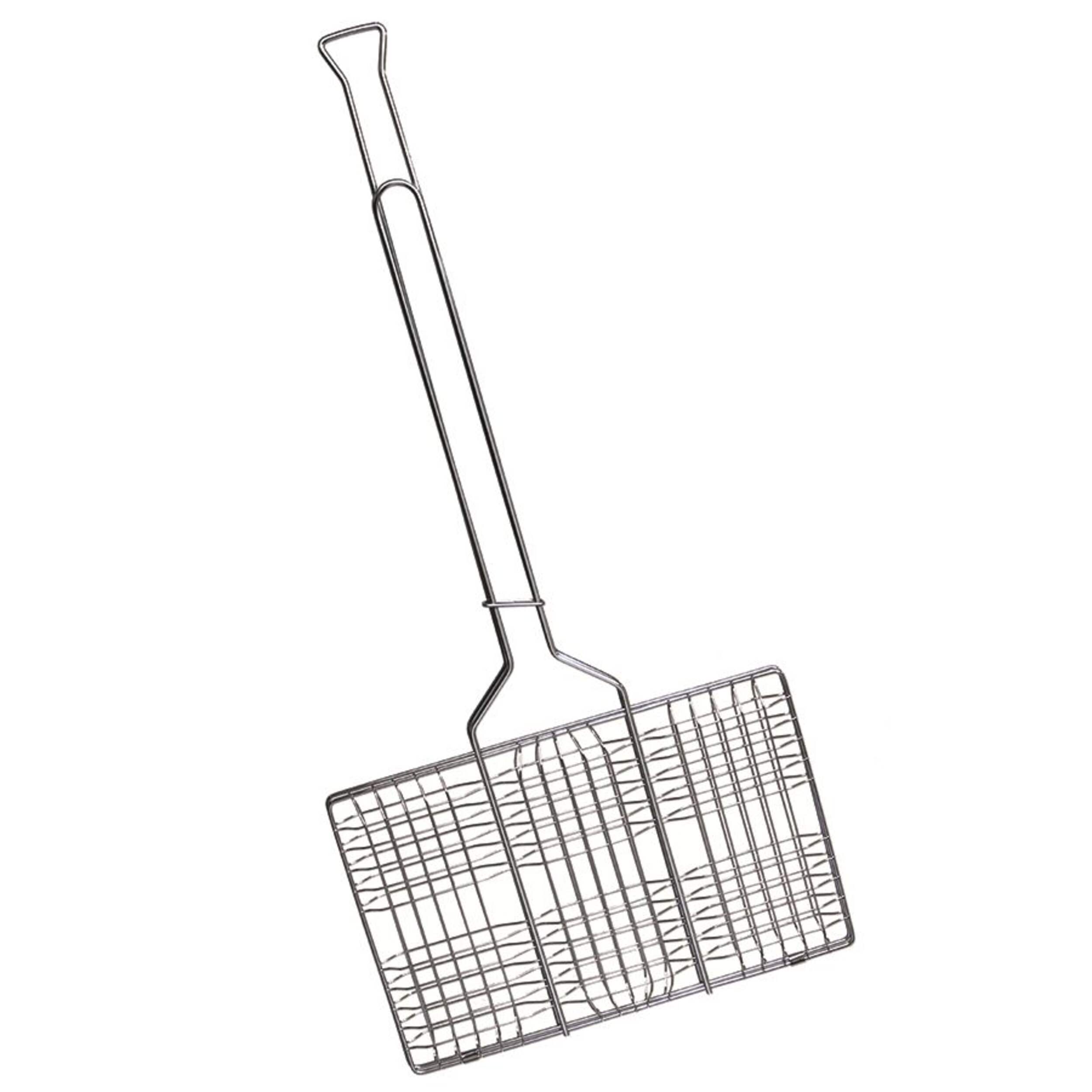 This minimalist outdoor hamburger grill from Rome Industries serves up all your backyard BBQ needs. The chrome plated steel build ensures years of use, with welded mesh compartments that fit up to six hamburgers or chops just right. At only 29 inches long, this compact grill slips easily onto any patio table or countertop. Perfect for those who prefer to keep things straightforward and simple when feeding a crowd, requiring just a spatula and a pair of tongs to serve up tasty burgers for famished guests.