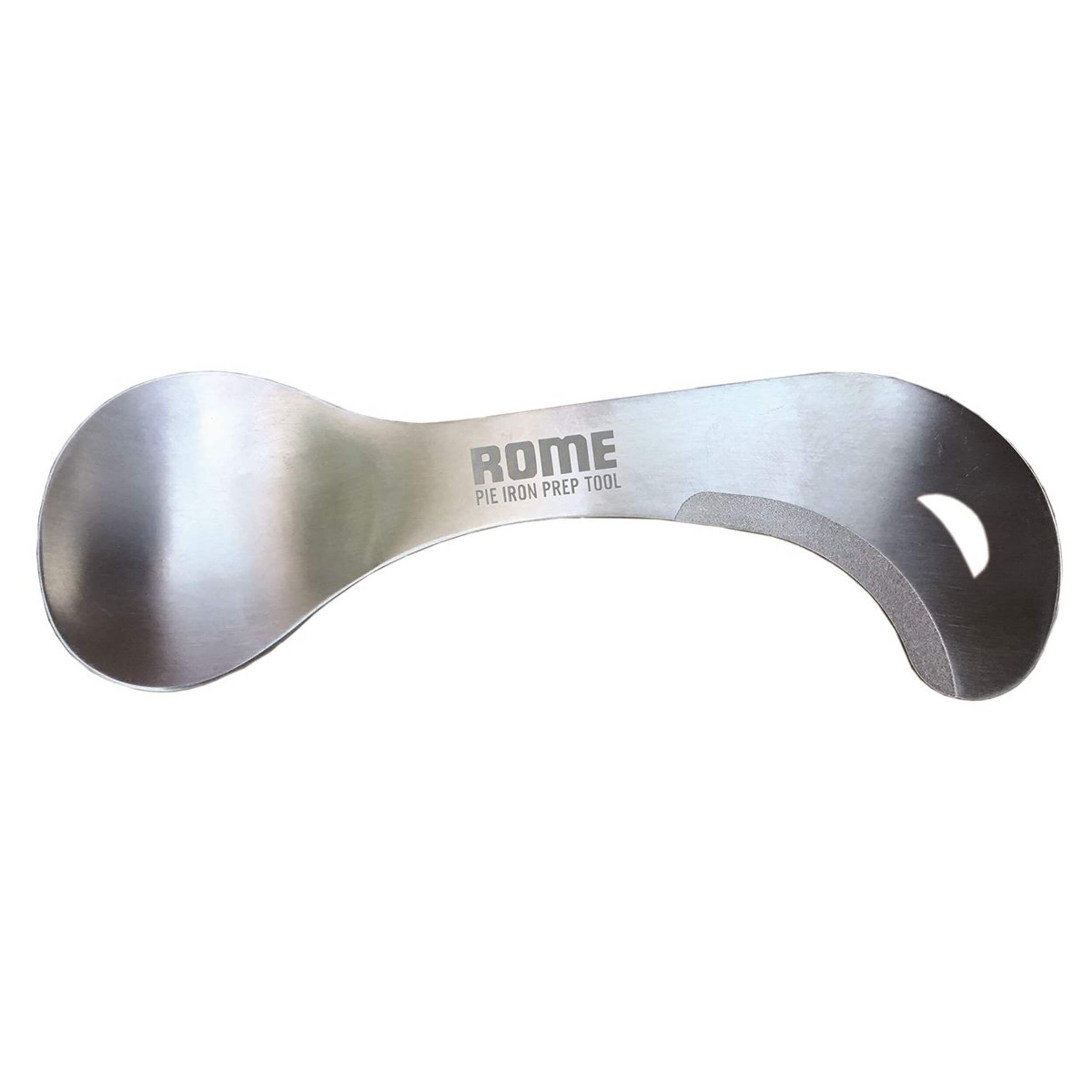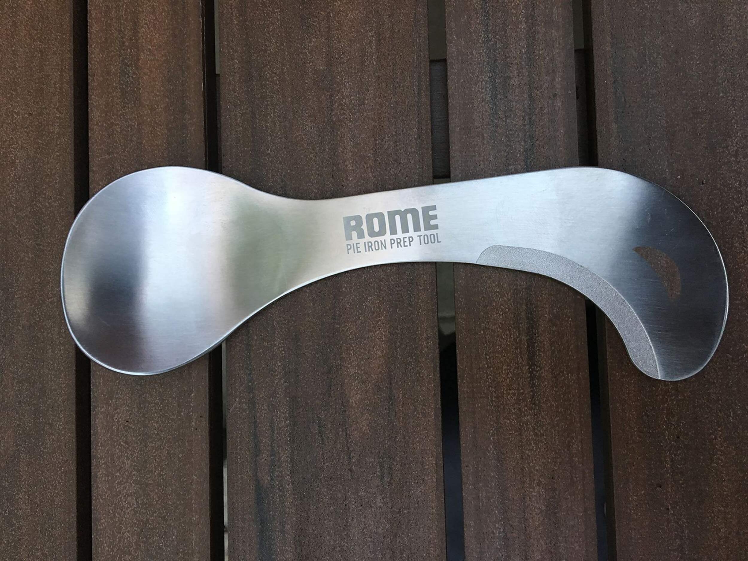 The multi-tool designed for pudgie pie cooking. This 7.75" x 2" stainless steel tool features a ladle for pie fillings, a flat side for spreading butter and edge for trimming bread. The bread trimmer is the real workhorse of the tool as easily removes the excess bread that sticks out of pie iron without having a sharp edge. We designed the curve of the steel to match the contour of our pie irons.