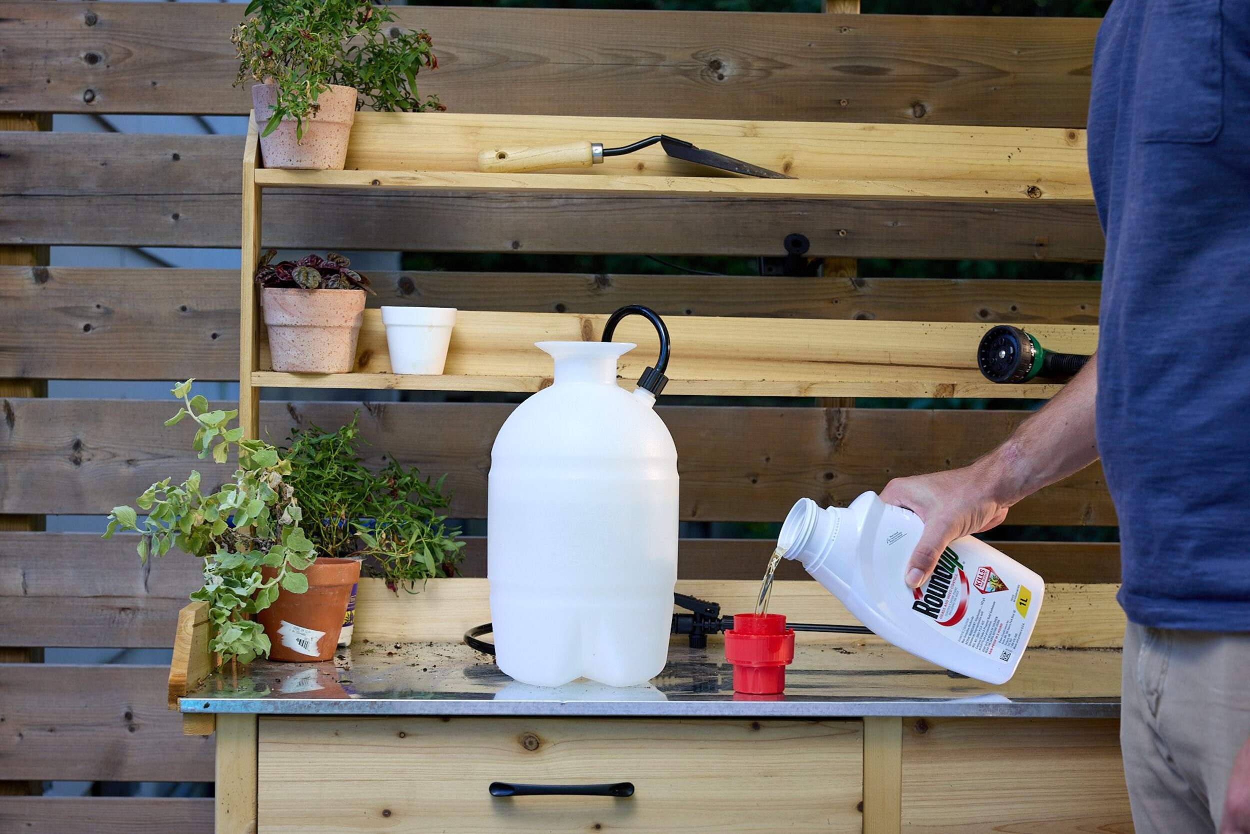 Why put up with ugly weeds popping up and taking root in and along your sidewalks, driveway, patio and other hard spaces? With Roundup® Concentrate Non-Selective Herbicide 1L, you don’t have to. This concentrated grass and weed control formula from Round Up controls the entire plant – including the root. Simple to mix and measure. Easy to use. Thanks to the easy pour spout with drain back cap, there’s less mess, too. To use, mix with water according to label directions and apply as directed using a suitable sprayer. See visible results within 3 days. See complete weed and grass kill in 2-4 weeks. Ideal for very large areas