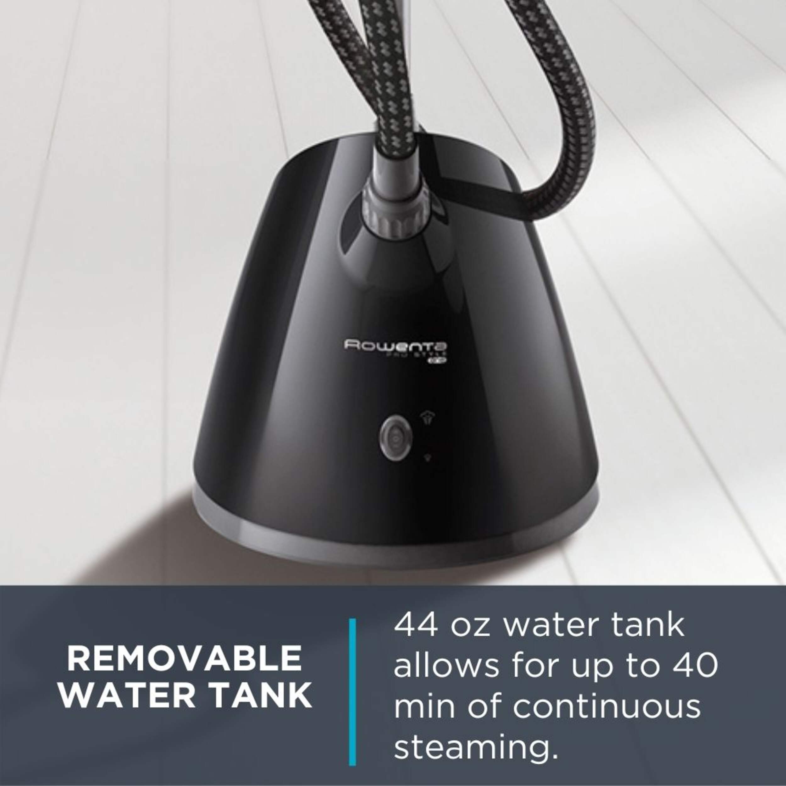 Large removable water tank with 1.3L (44oz) capacity allows for up to 40 minutes of continuous steaming