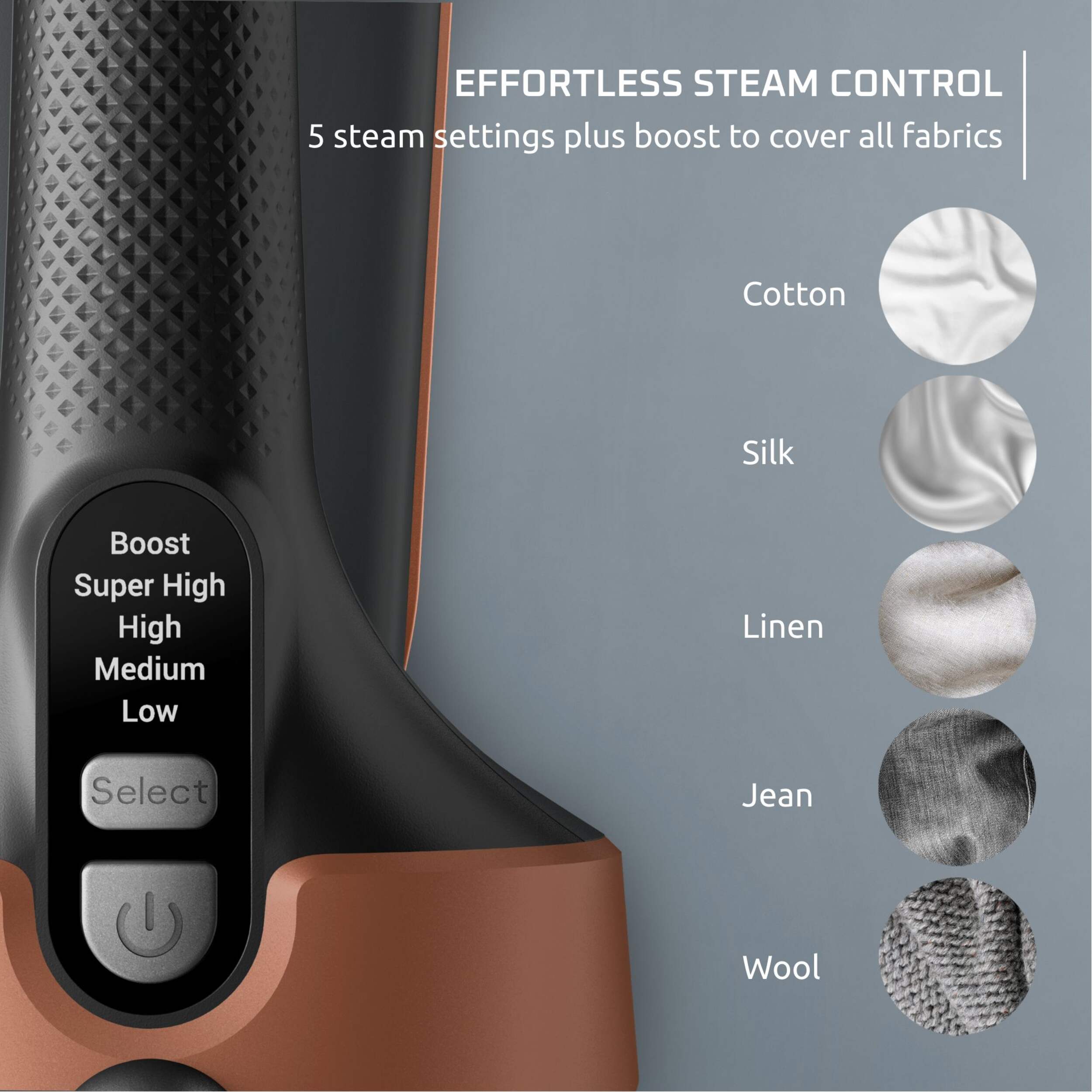 EFFORTLESS STEAM CONTROL: With 5 steam settings including a boost option to cover all fabrics, and the continuous steaming mode for easy steaming