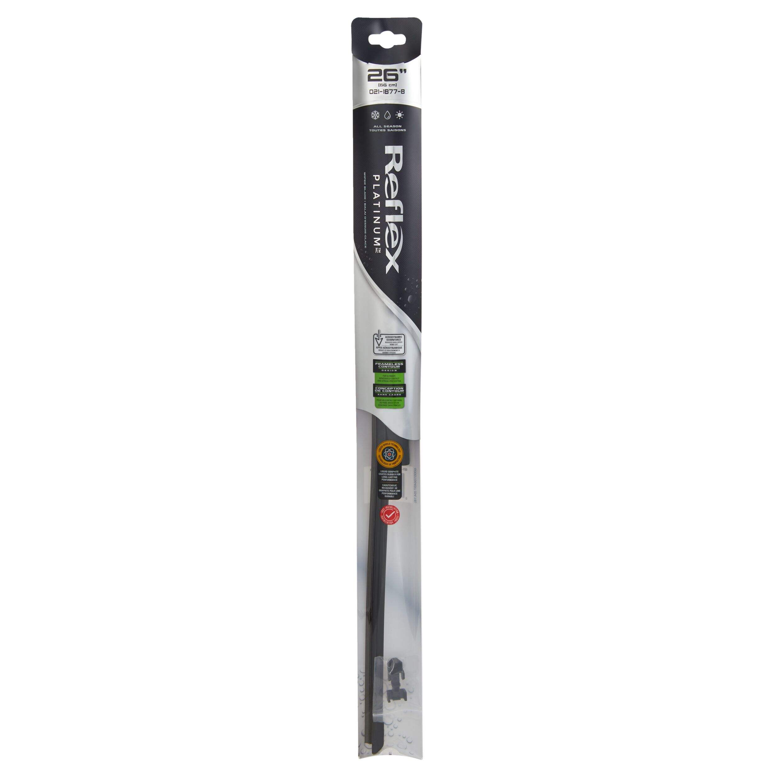 The Reflex Platinum All Season Wiper Blade uses an innovative connector system and aerodynamic spoiler to ensure you get a streak-free wipe in all conditions. The blade's flexible polymer spoiler also minimizes wind lift at high speeds, while a durable steel beam inside the blade allows it to maintain more even pressure across your vehicle’s windshield. Simply "click" the blade onto your wiper arm for easy installation, then allow this versatile all-season wiper to keep your eyeline clear come rain or shine.
