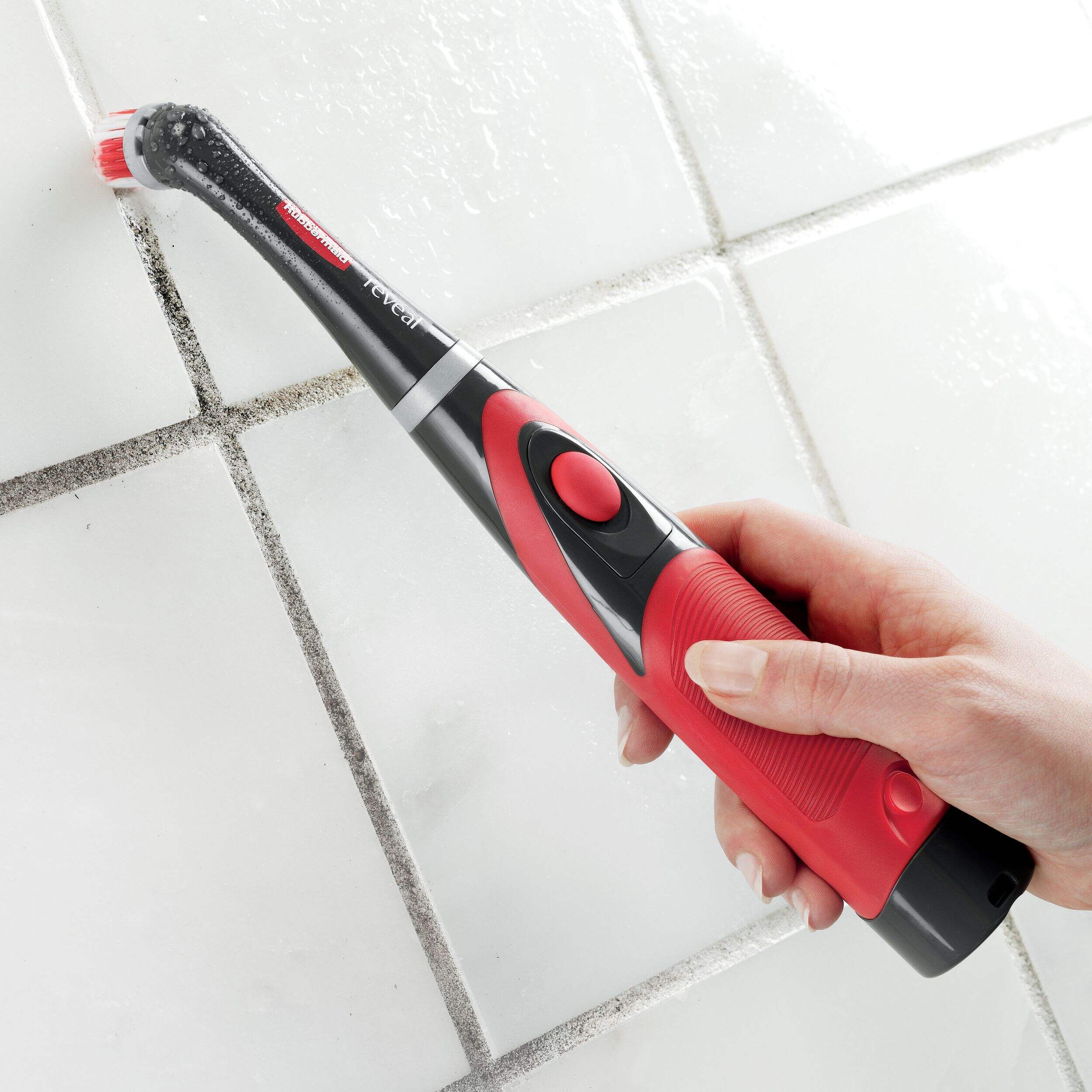 The Rubbermaid Reveal Power Scrubber efficiently removes tough dirt and grime from hard-to-reach areas with its oscillating head that scrubs six times per second. It offers robust performance, and the pulse and continuous scrub settings allow you to customize the tool for your specific needs. Designed for comfort, it features an ergonomic grip and rubberized molding for secure handling. Built to last with watertight assembly, this power scrubber works with interchangeable accessory brushes (sold separately).
