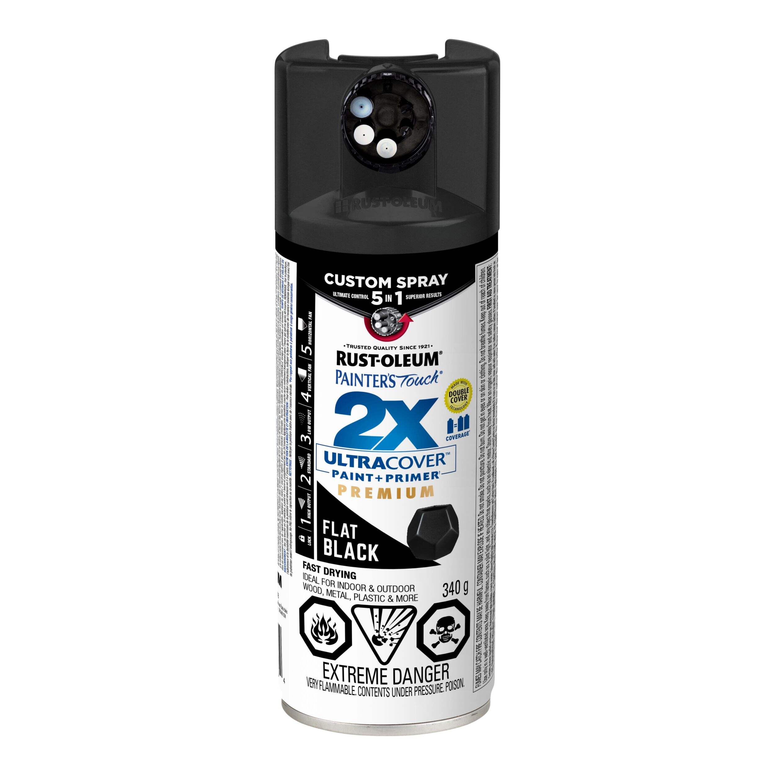 Painting projects just became a lot easier thanks to Rust-Oleum Painter's Touch 2X Ultra Cover Flat Black Paint & Primer. This 5-in-1 finish pulls double duty with superior paint coverage that produces a primed surface upon application, which in turn allows you to apply a topcoat right away. With Rust-Oleum's double cover technology, you get an ultra-durable finish in way less time than it would typically take to create.