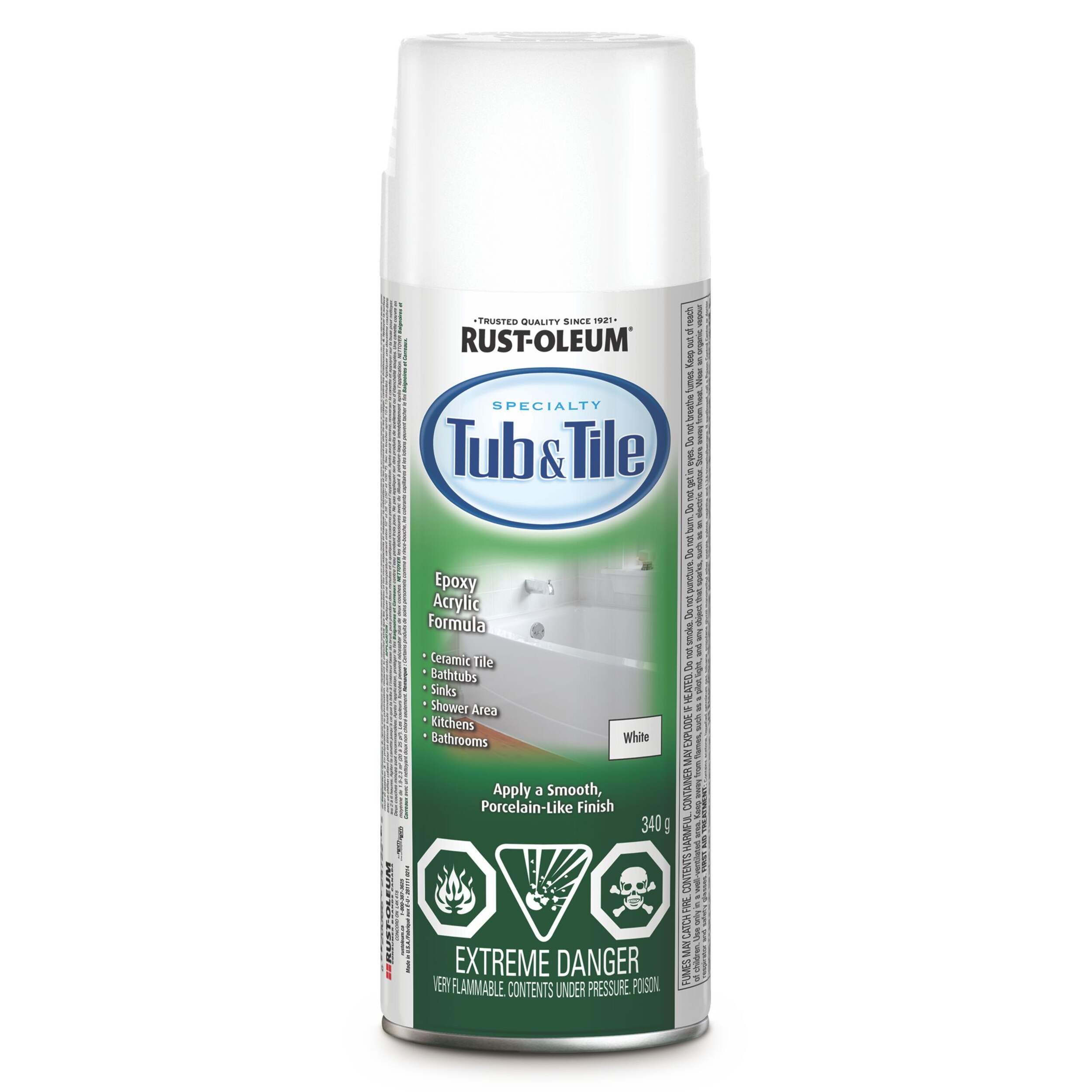 Rust-Oleum Tub & Tile Gloss White Epoxy Acrylic Spray delivers a porcelain finish for common surfaces in kitchens and bathrooms. The spray's proprietary formula forms a durable coating that withstands hot, soapy water without fading. The glossy finish brightens the appearance of tiles, fixtures, and surfaces to produce a clean and fresh appearance. For added convenience, Rust-Oleum's specialty formula resists chipping, cracking, and peeling to ensure long-lasting results.