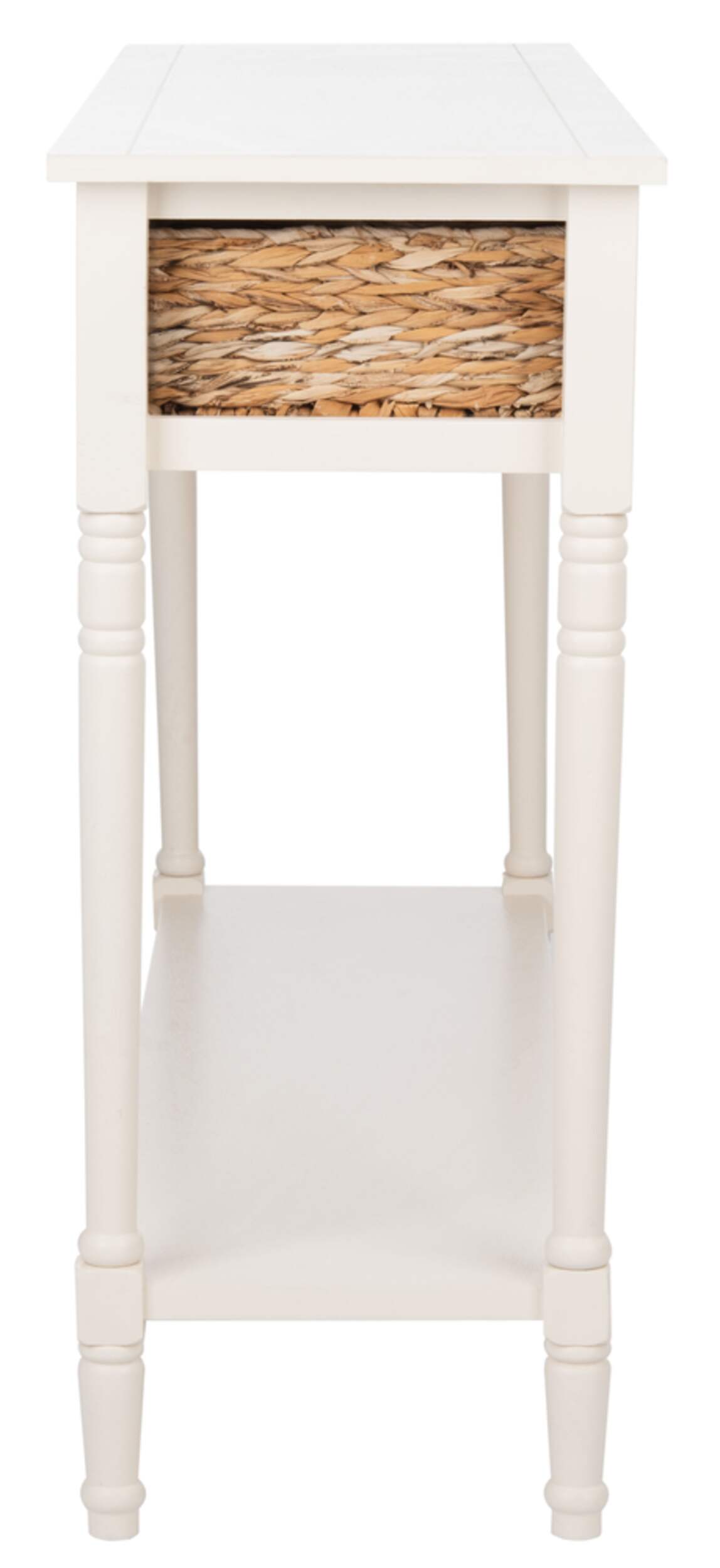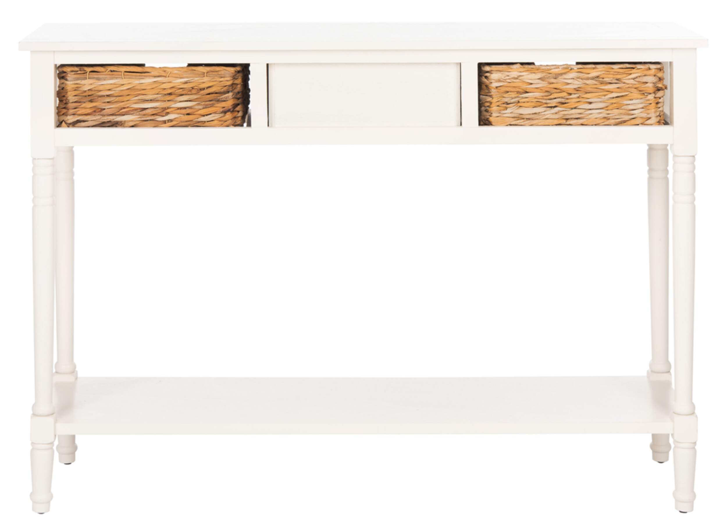 From coastal cottage to rustic lodge, this vintage-styled Safavieh Christa Console Table in distressed white lends welcoming charm to any entry hall or makes a wonderful focal wall in a living or family room. With rattan weave drawers and lower shelf, this table is perfect for both storage and display.