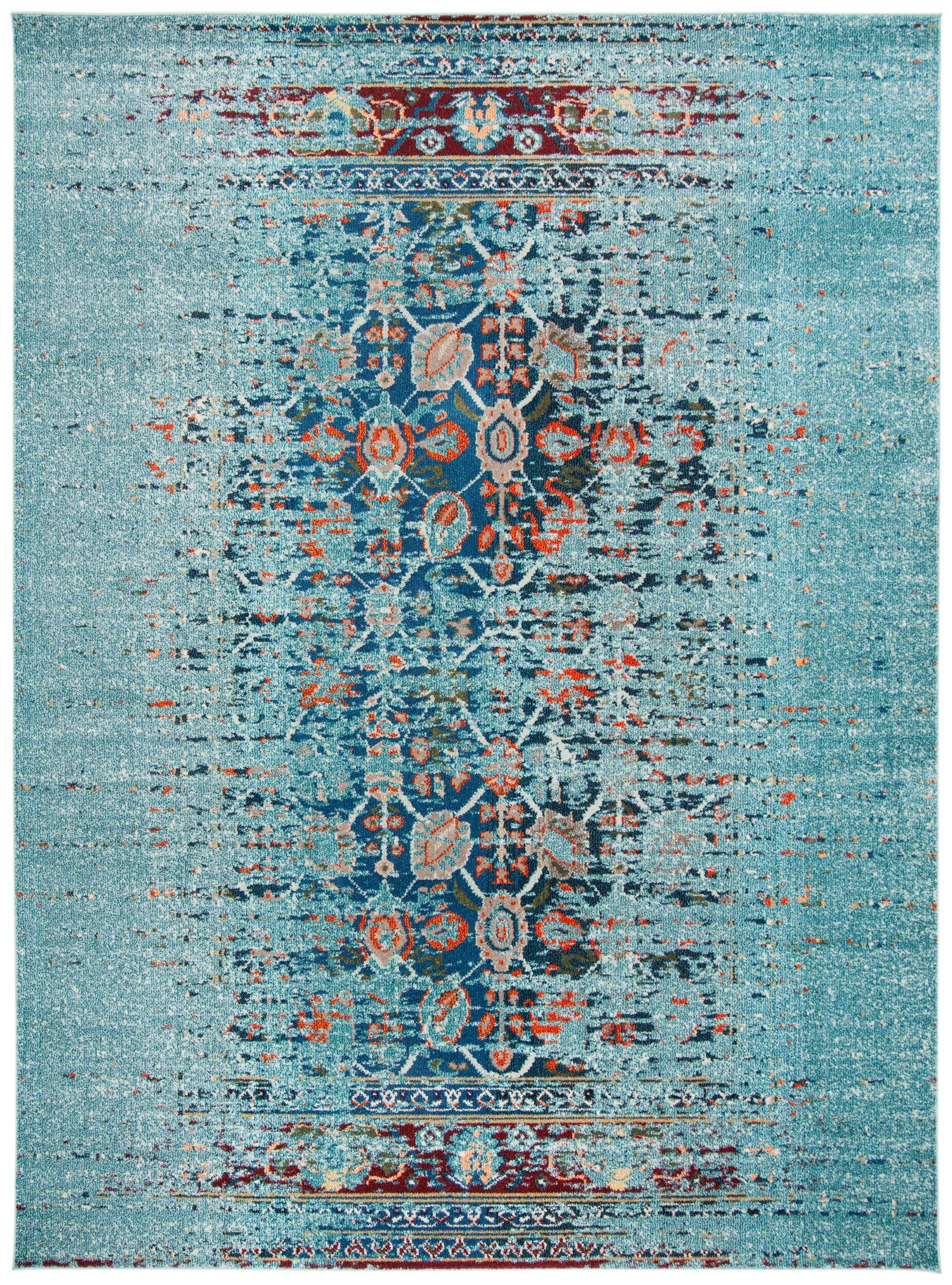 Bring bohemian flair to your space with the Safavieh Monaco 208 Rug, Blue/Multi. This power-loomed polypropylene rug mixes high and low loop piles for texture and dimension. The erased-weave look offers an artisanal vibe, while classic Persian motifs add global appeal. Available in multiple sizes, this durable rug works in any room, while the 0.45-inch pile is soft underfoot yet built to handle daily wear. Safavieh artfully blends modern erased-weave with timeless motifs in a boho-chic rug that elevates any room.