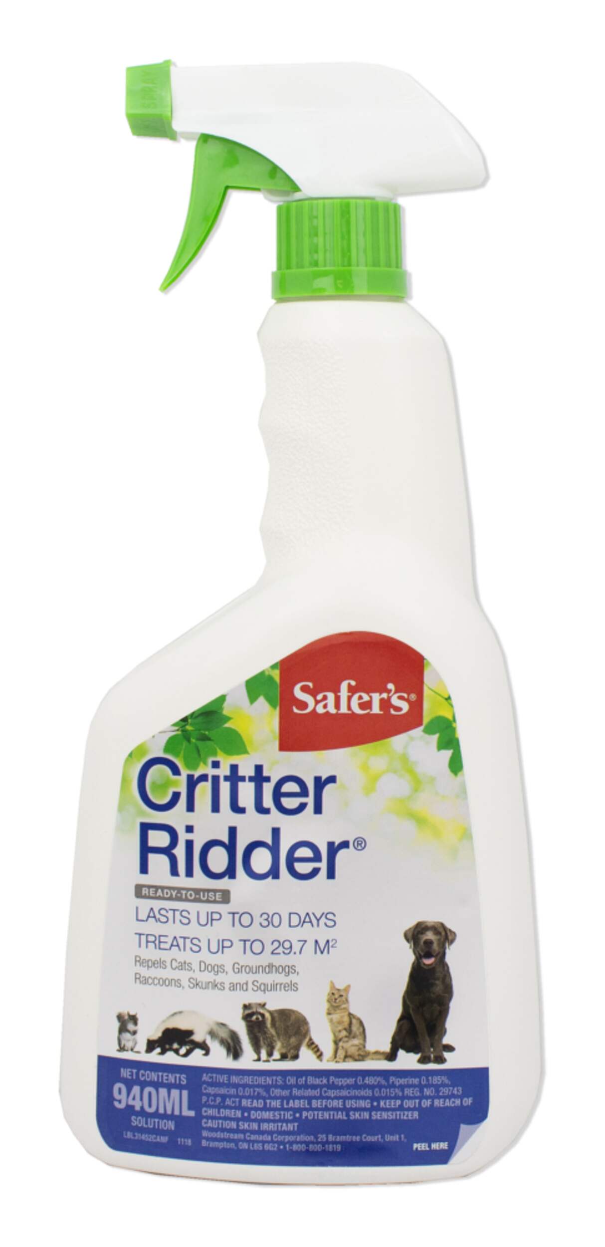 Safer’s® Critter Ridder® Ready-To-Use Animal Repellent is an effective dual-action spray that uses ingredients like dried blood, putrescent egg, and garlic to create an unpleasant environment. It repels by irritating unwanted animals' senses of smell and taste, causing them to seek food and shelter elsewhere. For added convenience, Critter Ridder® is also easy to use. Simply point the bottle in the designated area and spray!