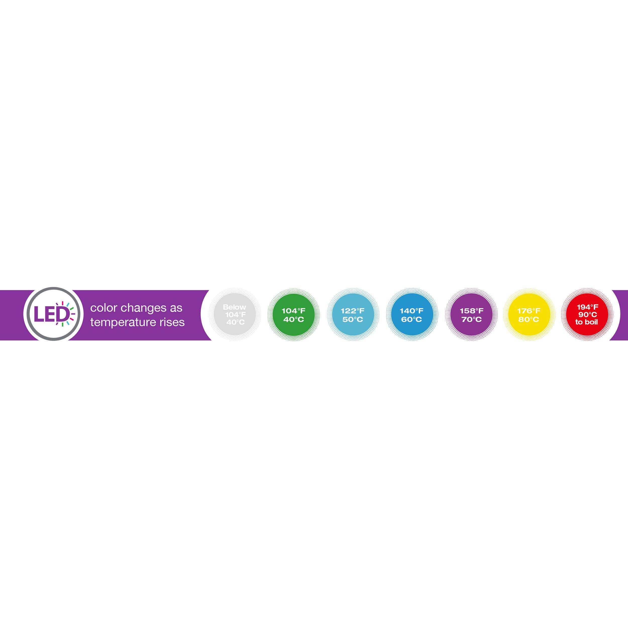 Elegant. Stylish. Sleek. This kettle can be used to boil water and steep your favorite tea at the exact temperature required. The 7 pre-set temperatures adapt to a variety of teas; from oolong to chai, herbal to black. The 360 degree swivel base with cord storage allows you the convenience of cord-free serving and a clutter-free counter. The LED lights change as the temperature rises to indicate the temperature of water the kettle has reached. The perfect cup of tea is at the press of a button!
