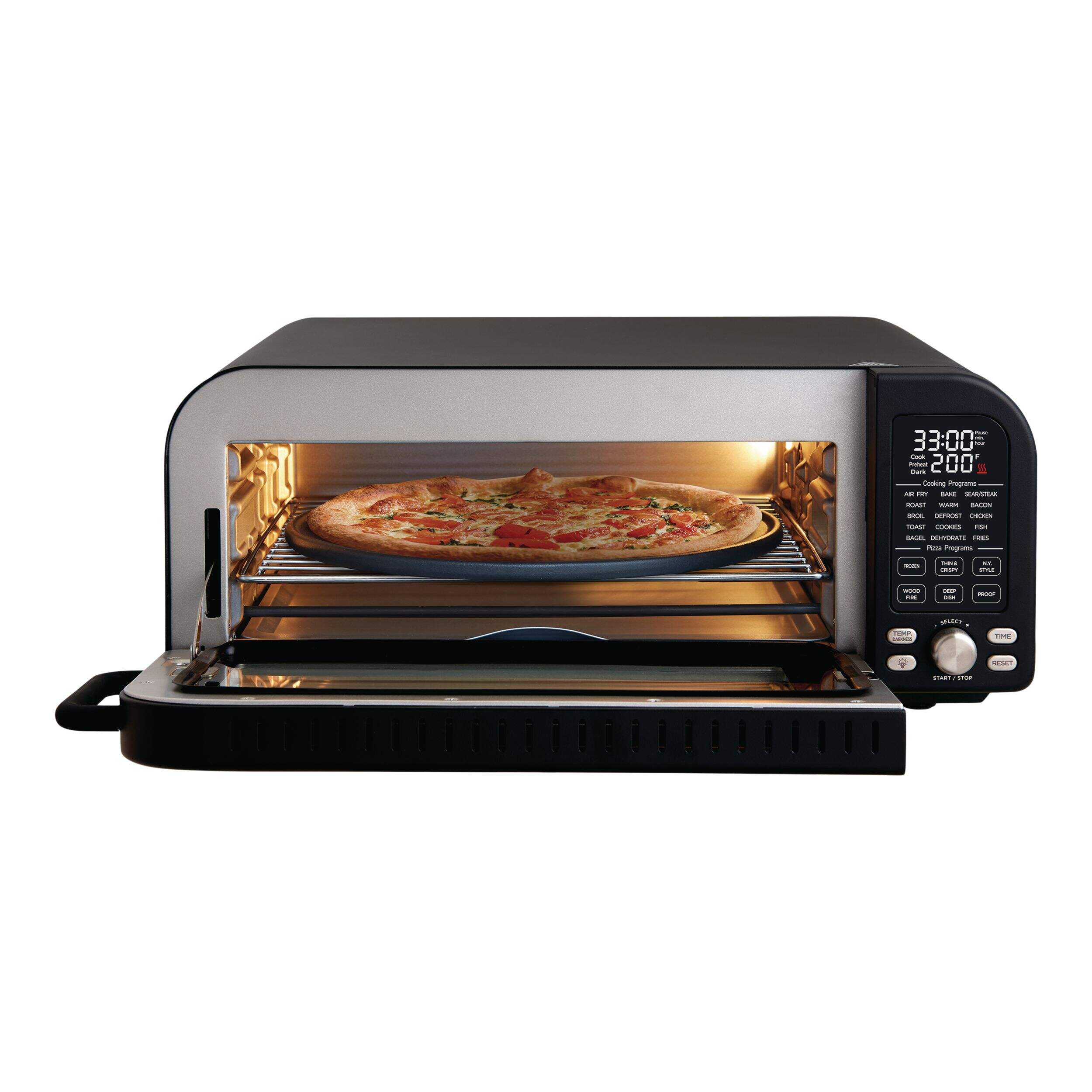 Accessories: Reversible Non-stick Cast Iron Pizza Stone and Grill, Air Fry Basket, Oven Rack, Crumb Tray