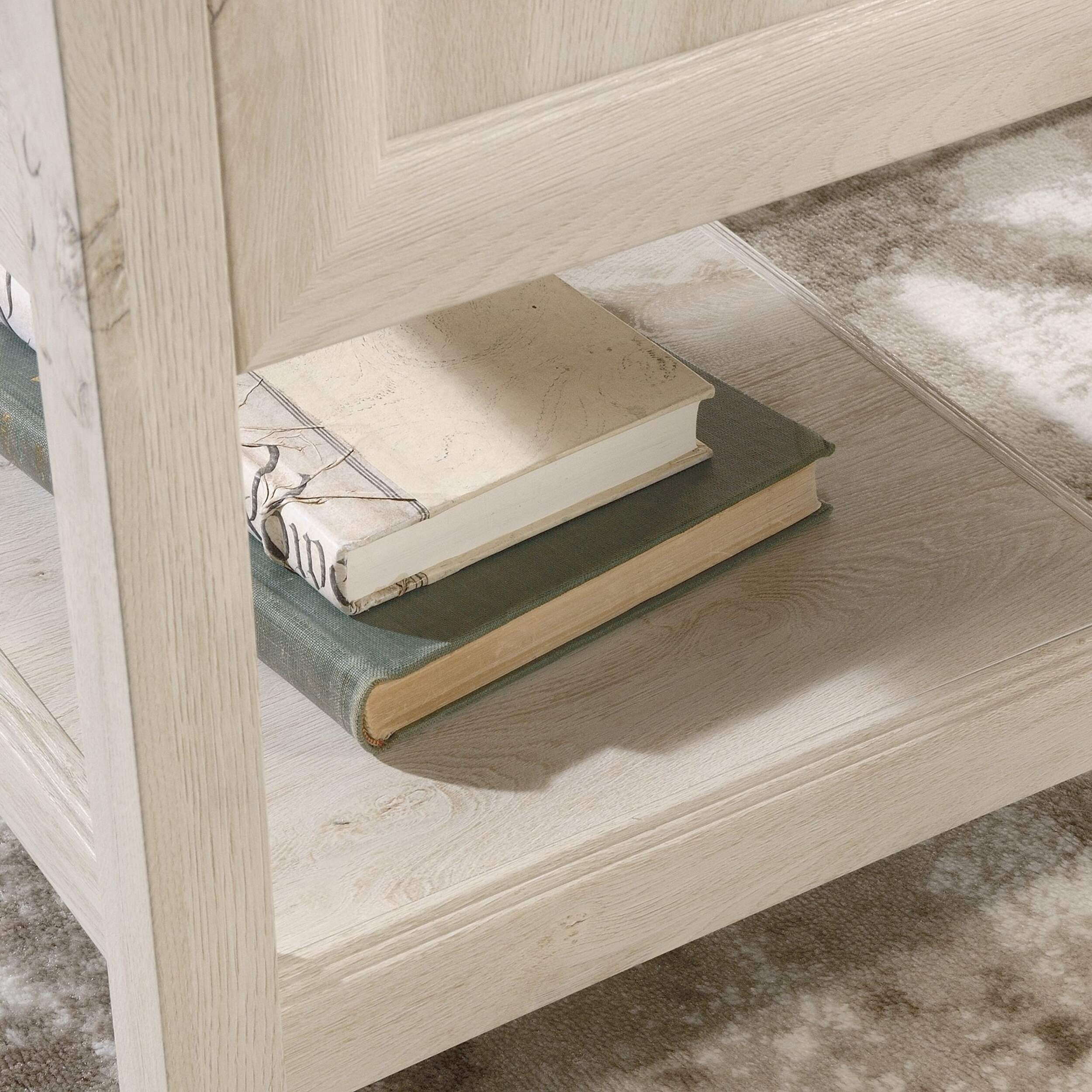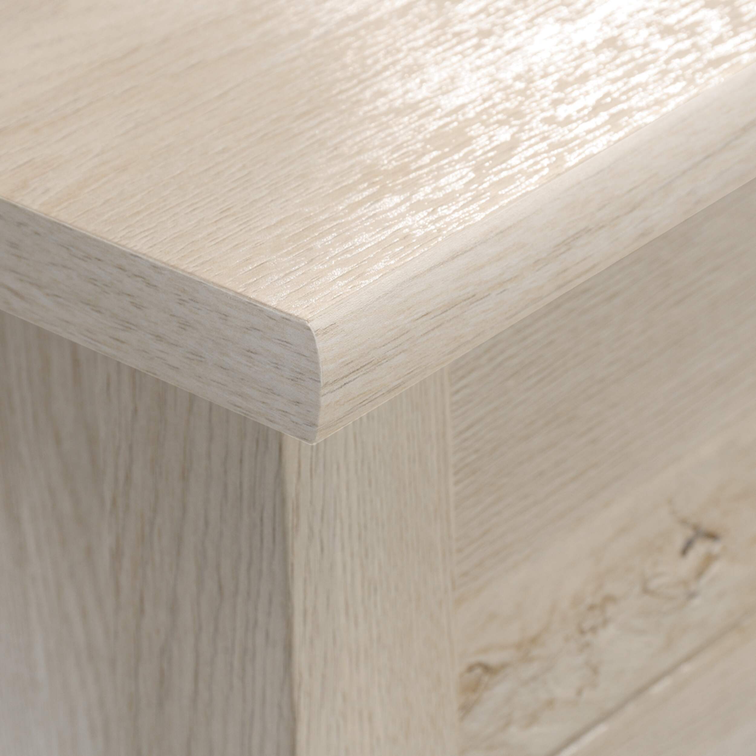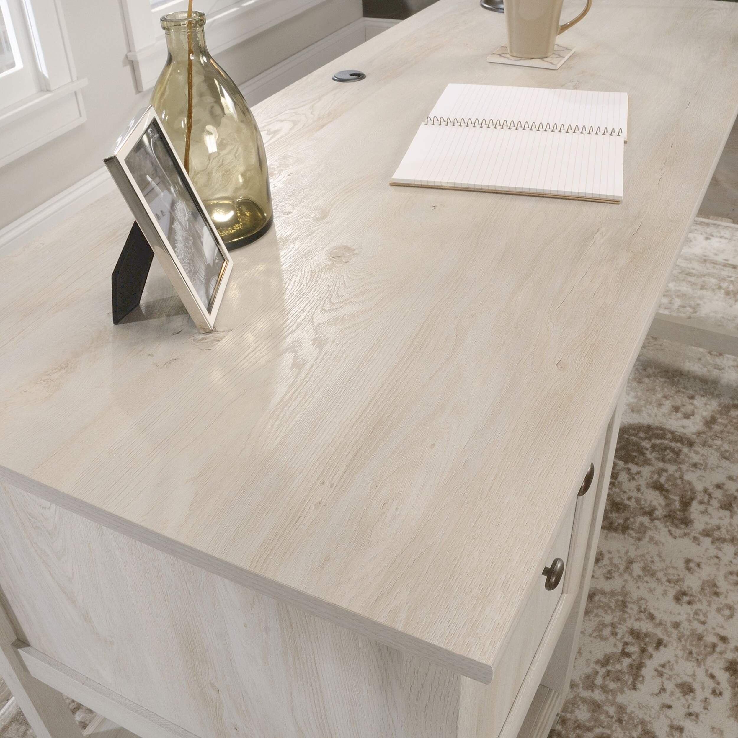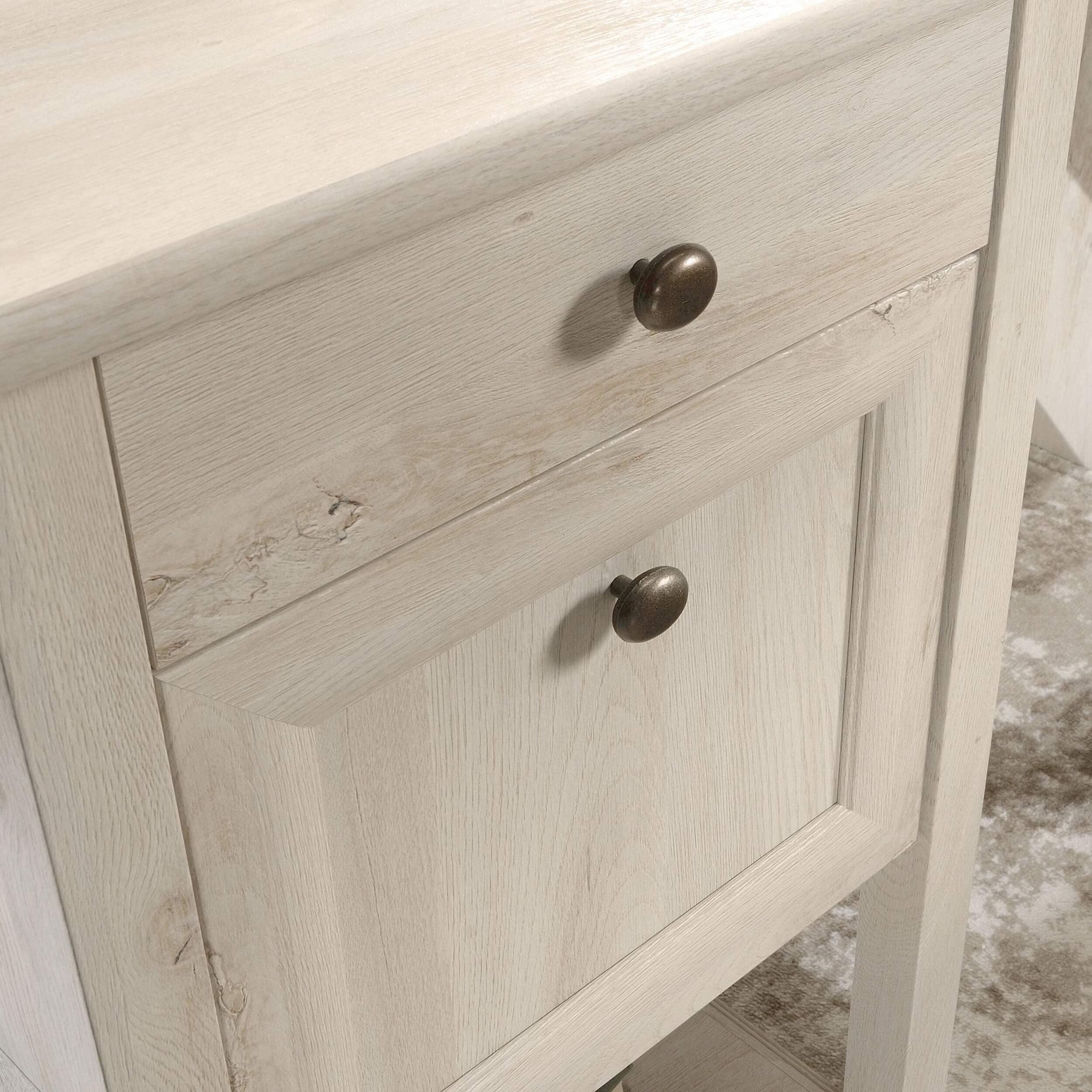 Sauder Edge Water Home Office L-Desk with Storage features a file drawer with full extension slides that holds letter or European size hanging files to help keep you organized