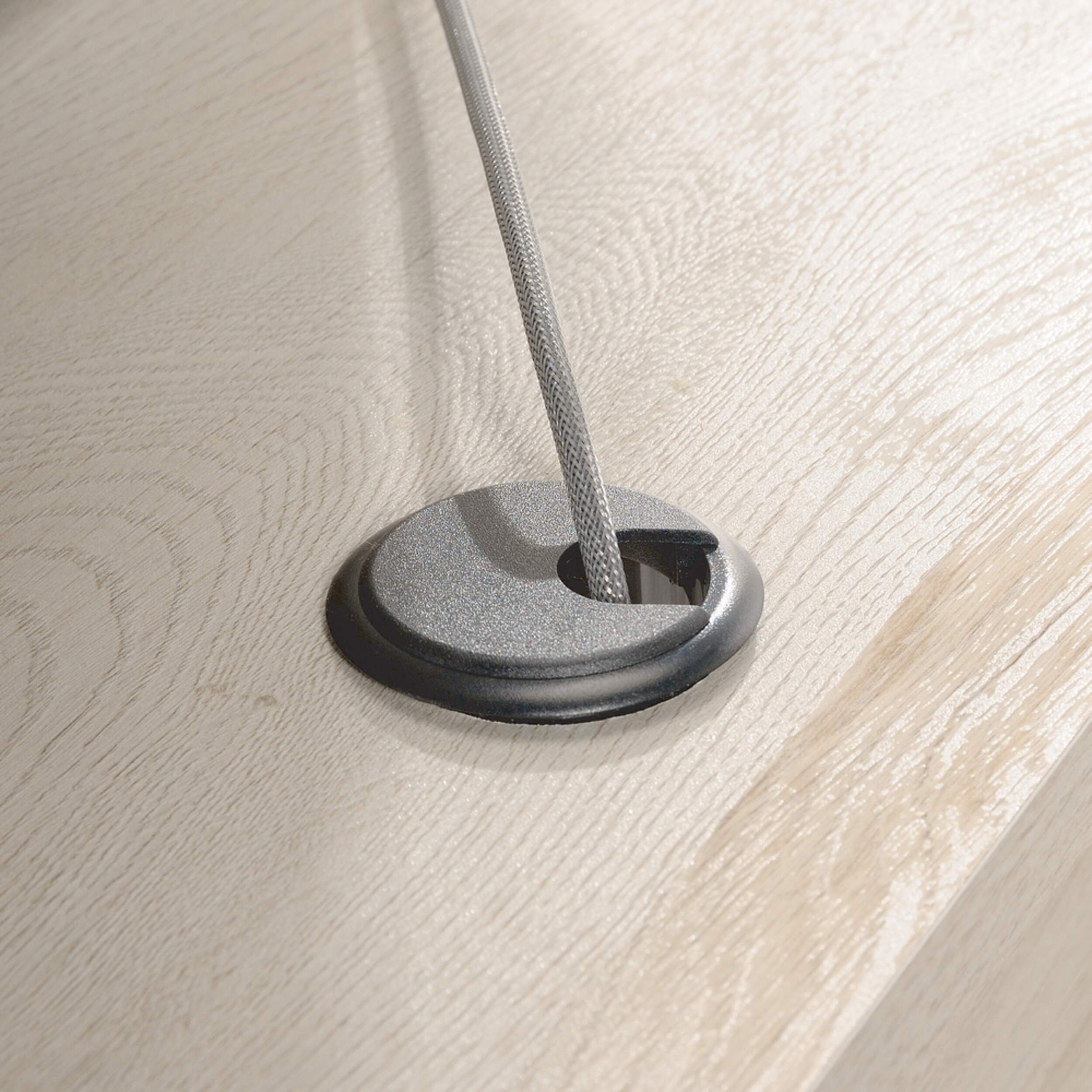 Need a little motivation to get you going on your big work projects? A revamped office space should do the trick! Update your home office with the charming style and design of this L-shaped desk from the Edge Water® collection. This home office desk offers a spacious top surface that provides you with room for everything you need like your laptop, stacks of notepads, a cup full of pens and even a little home décor. This farmhouse L-shaped desk features a small storage drawer that opens and closes on smooth metal runners for easy access storage of miscellaneous supplies. The file drawer with full extension slides can hold letter or European sizes hanging files for increased organization. The lower shelf of this L-shaped office desk provides you with additional storage space. The cord management system includes desktop grommets so you can keep all wires neat and out of site. Finished on all sides in Chalked Chestnut®, this beautiful L-shaped desk with storage will have your home office looking better than ever.